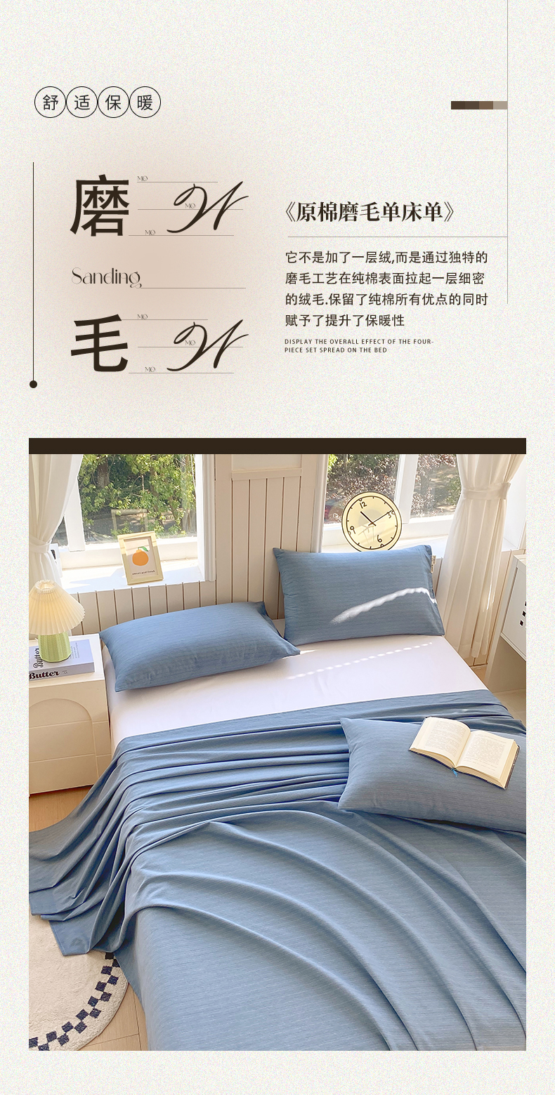 春皖家纺 2025新款原棉磨毛单床单 床单单件-风格一 柏林蓝