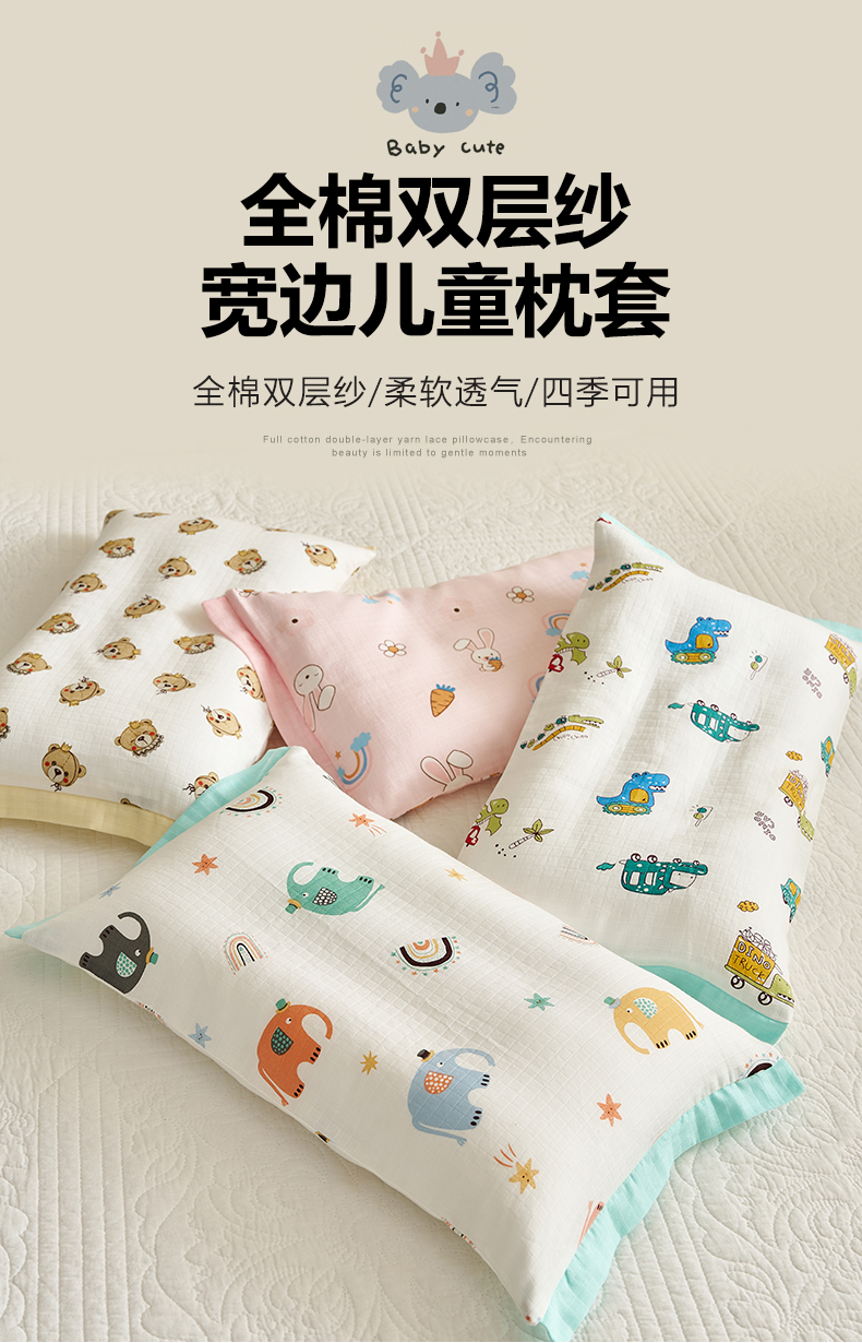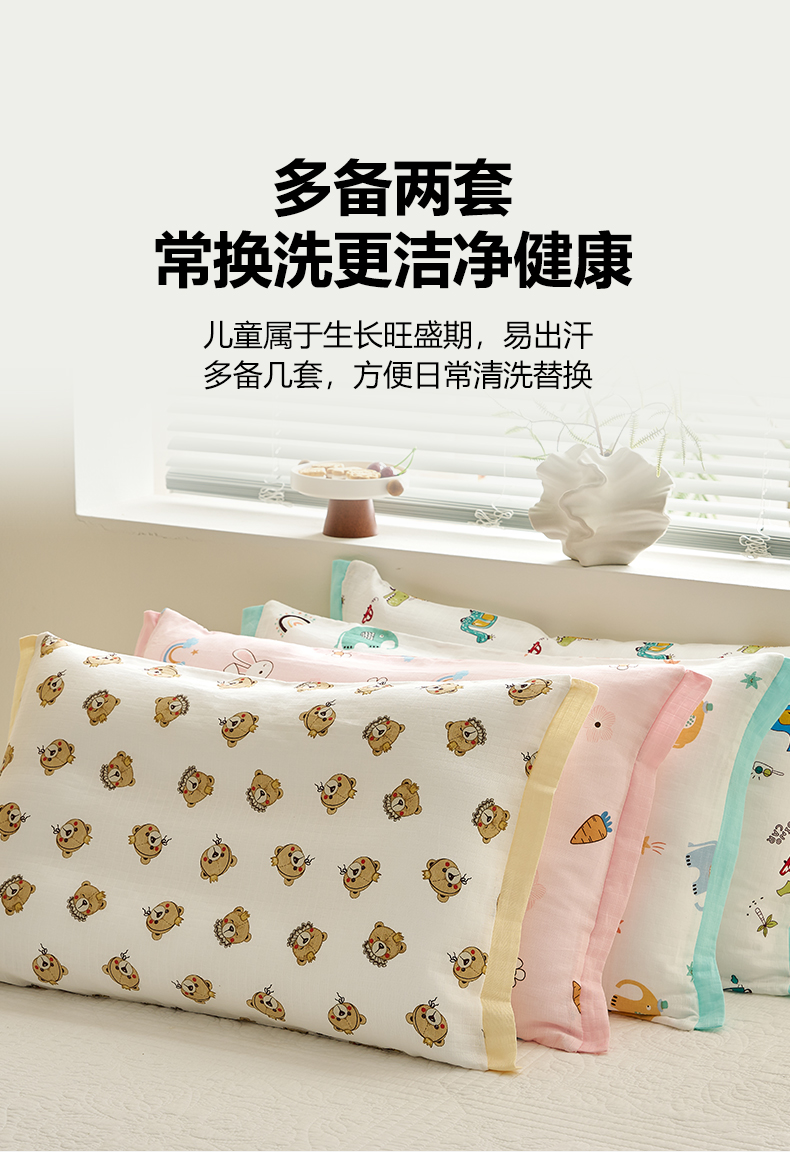 商品名称:乐可 2025新款双层纱宽边儿童枕套 TK3小熊王子白