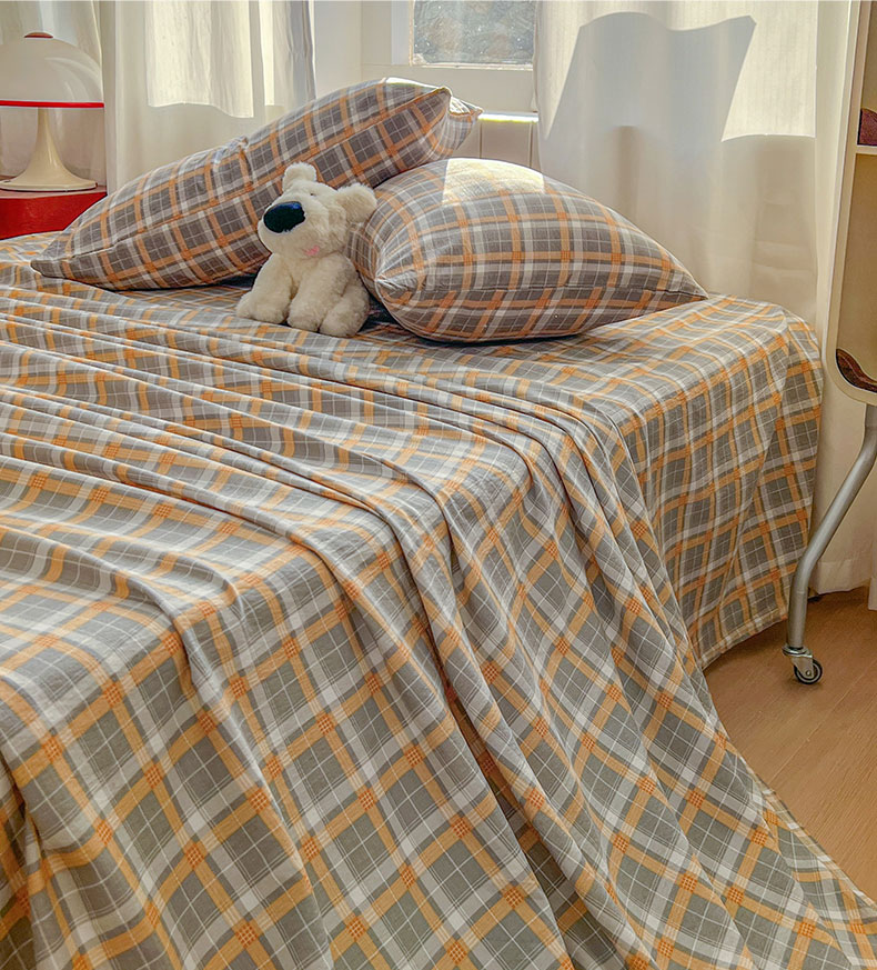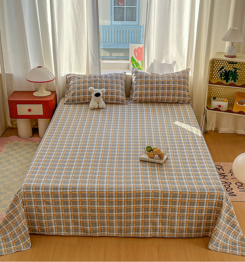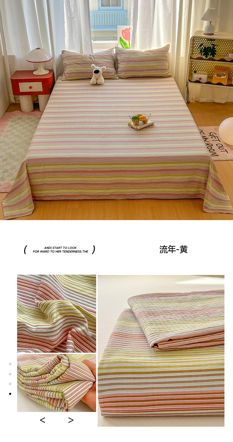 (总)思诺羽床笠 2026新款亲肤云朵双层纱无印风水洗棉三件套四件套,浅咖条,布林灰,海蓝条,黄绿条,灰白条,简兮格,科隆绿格,米兰格,奶霜条,浅蓝条,映像格,云纱条