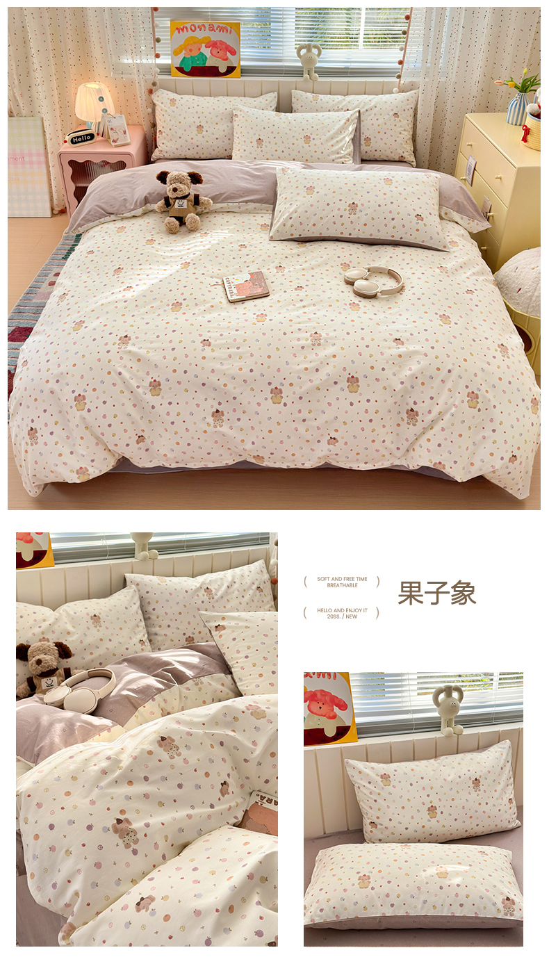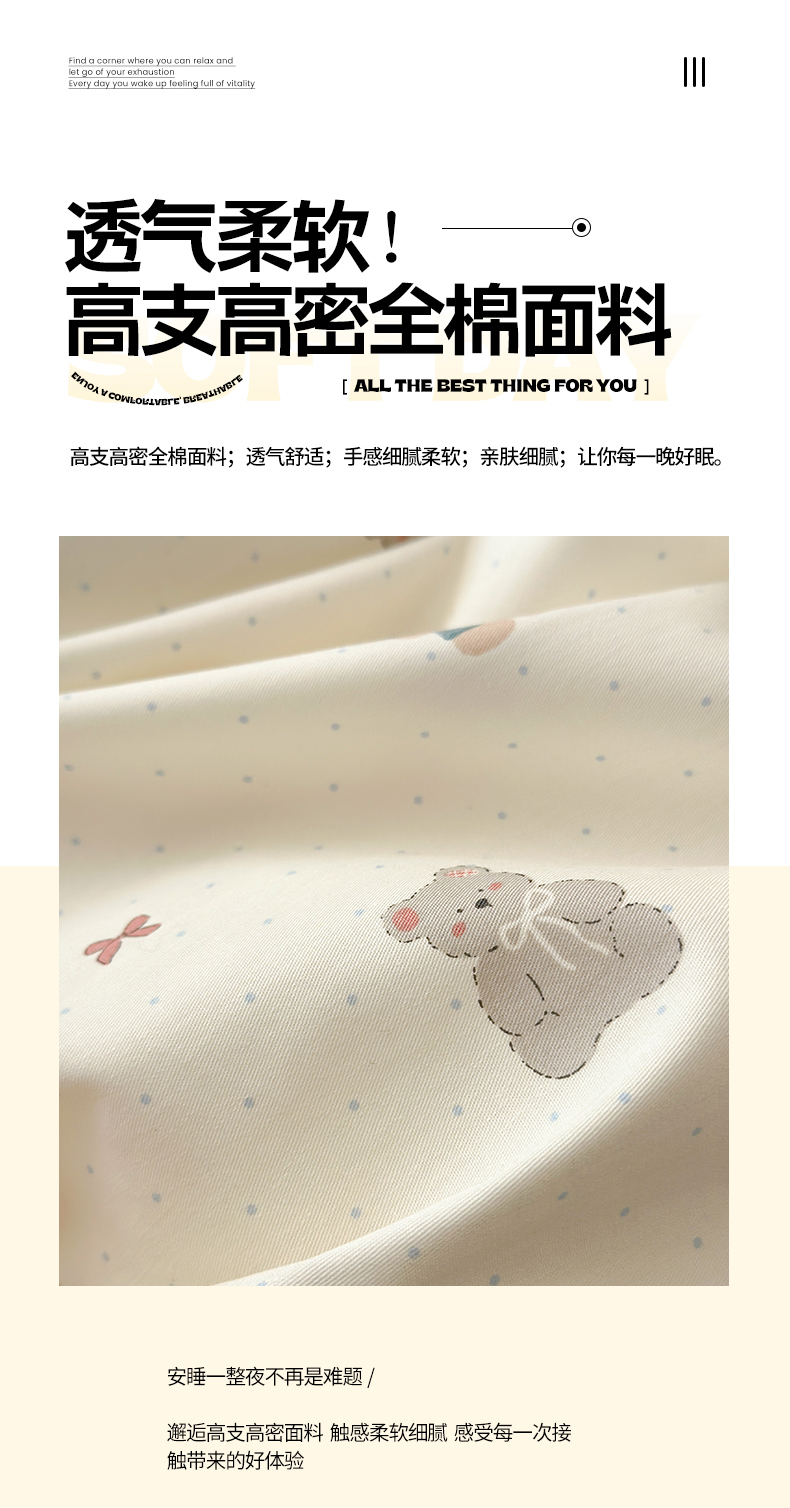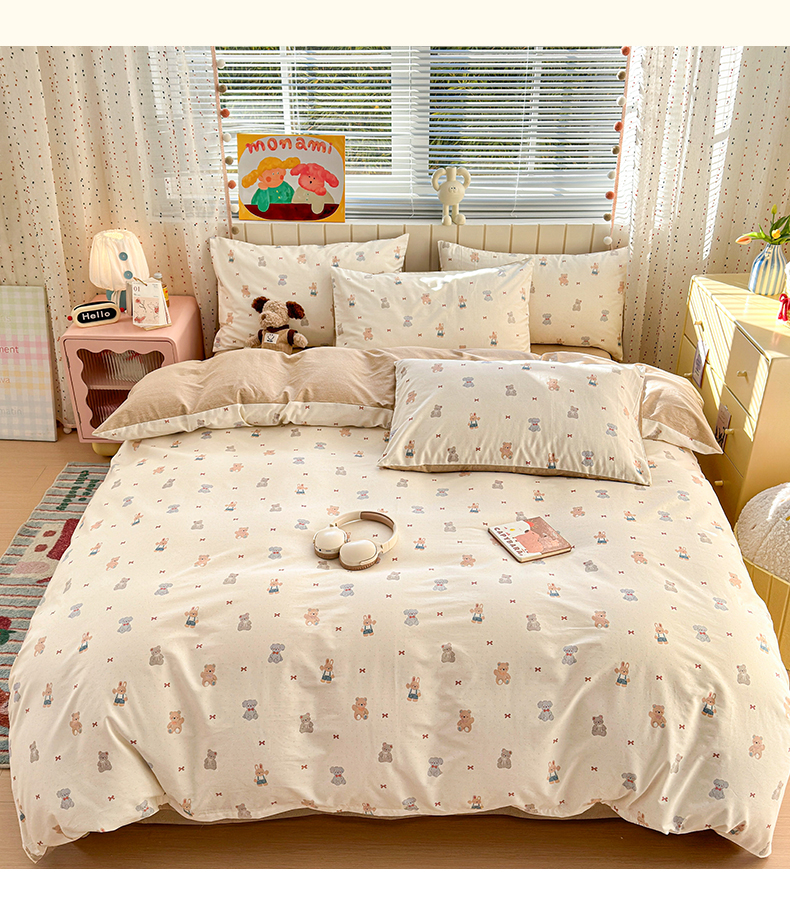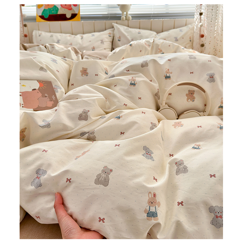 当前位置: 91家纺网 > 商品网购 > 床品套件 > 四件套 > 全棉普通四件套 > 清雅福 2026春夏新款INS小清新40支全棉13372四件套第一批 豆丁小熊