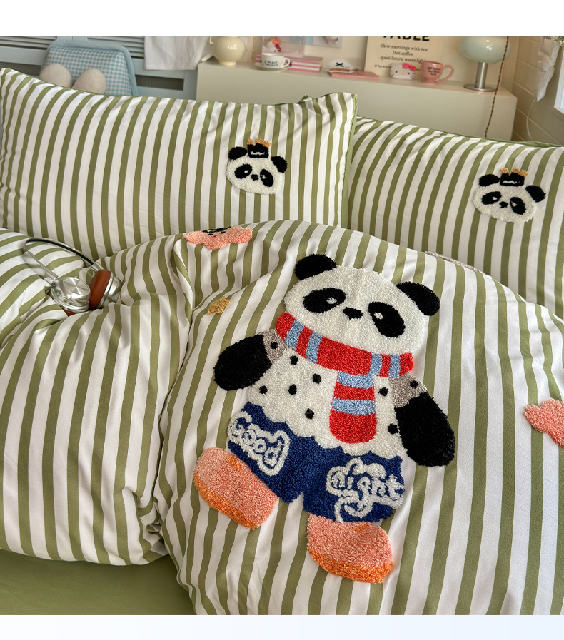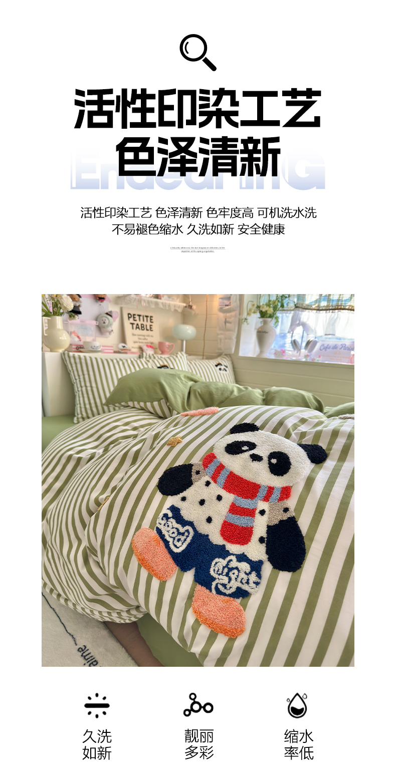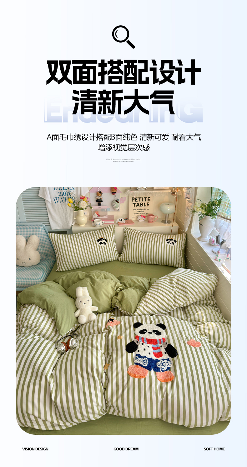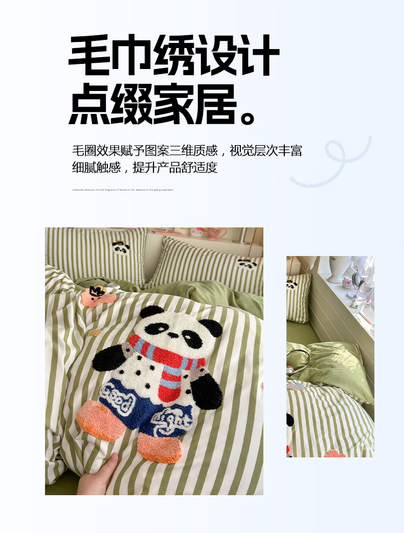 当前位置: 91家纺网 > 商品网购 > 床品套件 > 四件套 > 水洗棉四件套 > 优卡迪家纺馆 2026新款A类亲肤水洗棉毛巾绣系列四件套下载文件包含买家秀 功夫熊猫-抹绿