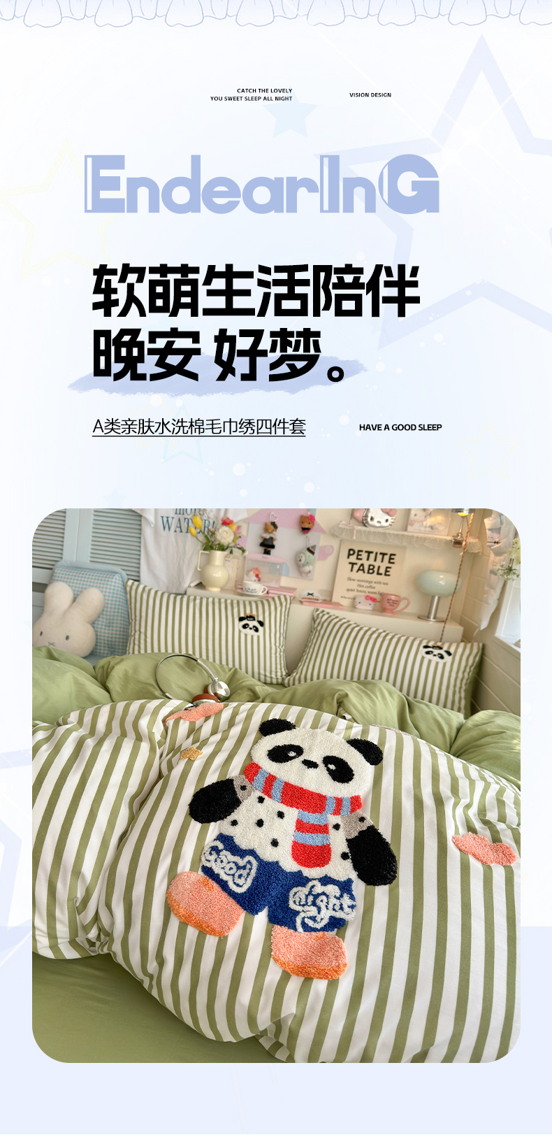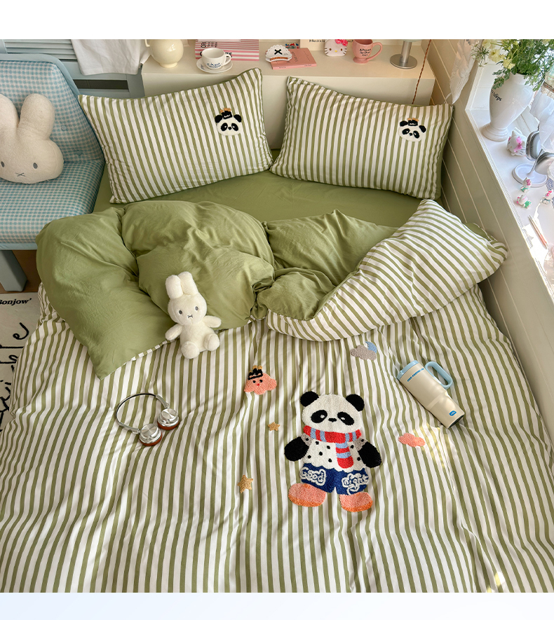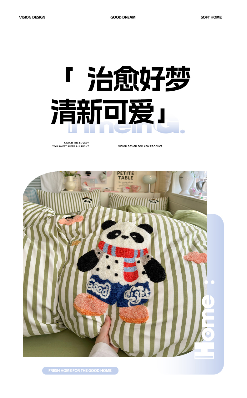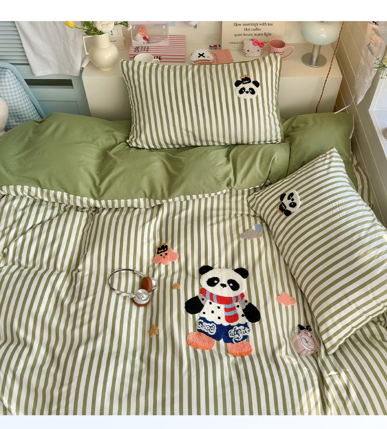 当前位置: 91家纺网 > 商品网购 > 床品套件 > 四件套 > 水洗棉四件套 > 优卡迪家纺馆 2026新款A类亲肤水洗棉毛巾绣系列四件套下载文件包含买家秀 功夫熊猫-抹绿