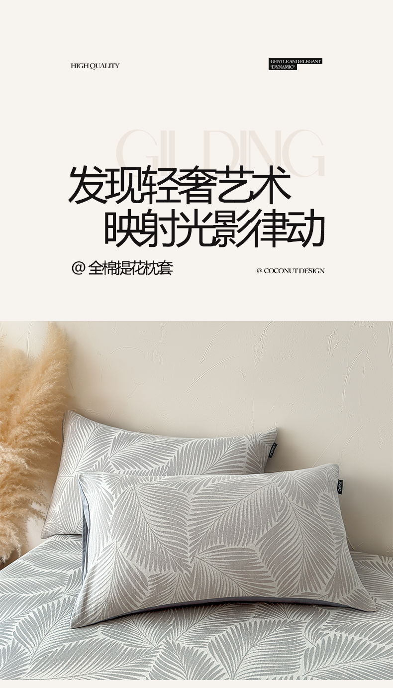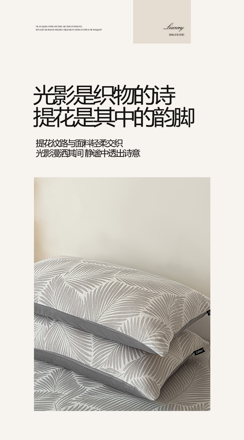 商品名称:涵宸家纺 2026新款全棉提花色坊系列单枕套 枕套-叶影-灰