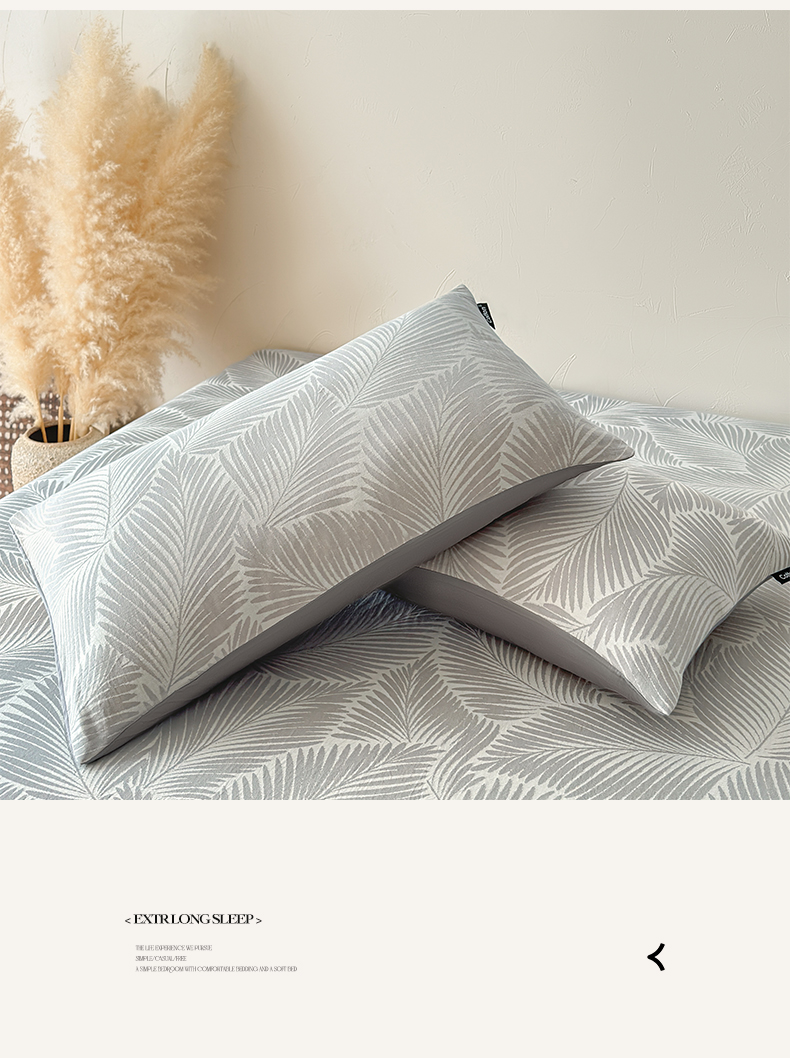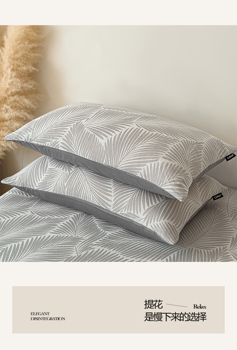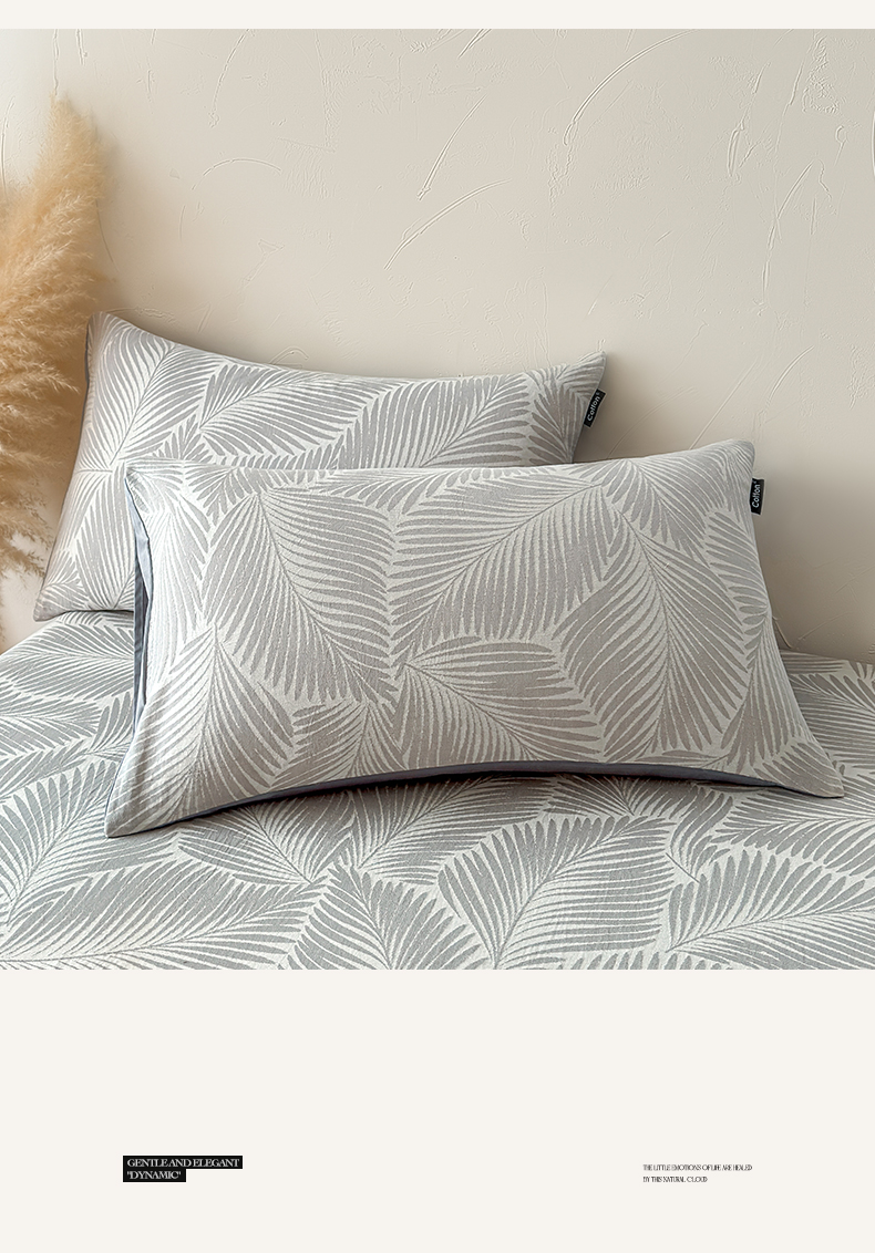 涵宸家纺 2026新款全棉提花色坊系列单枕套 枕套-叶影-灰