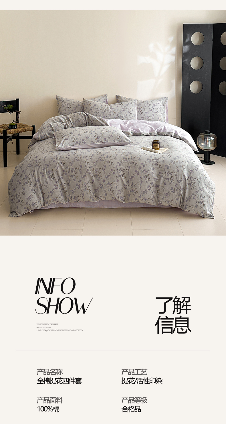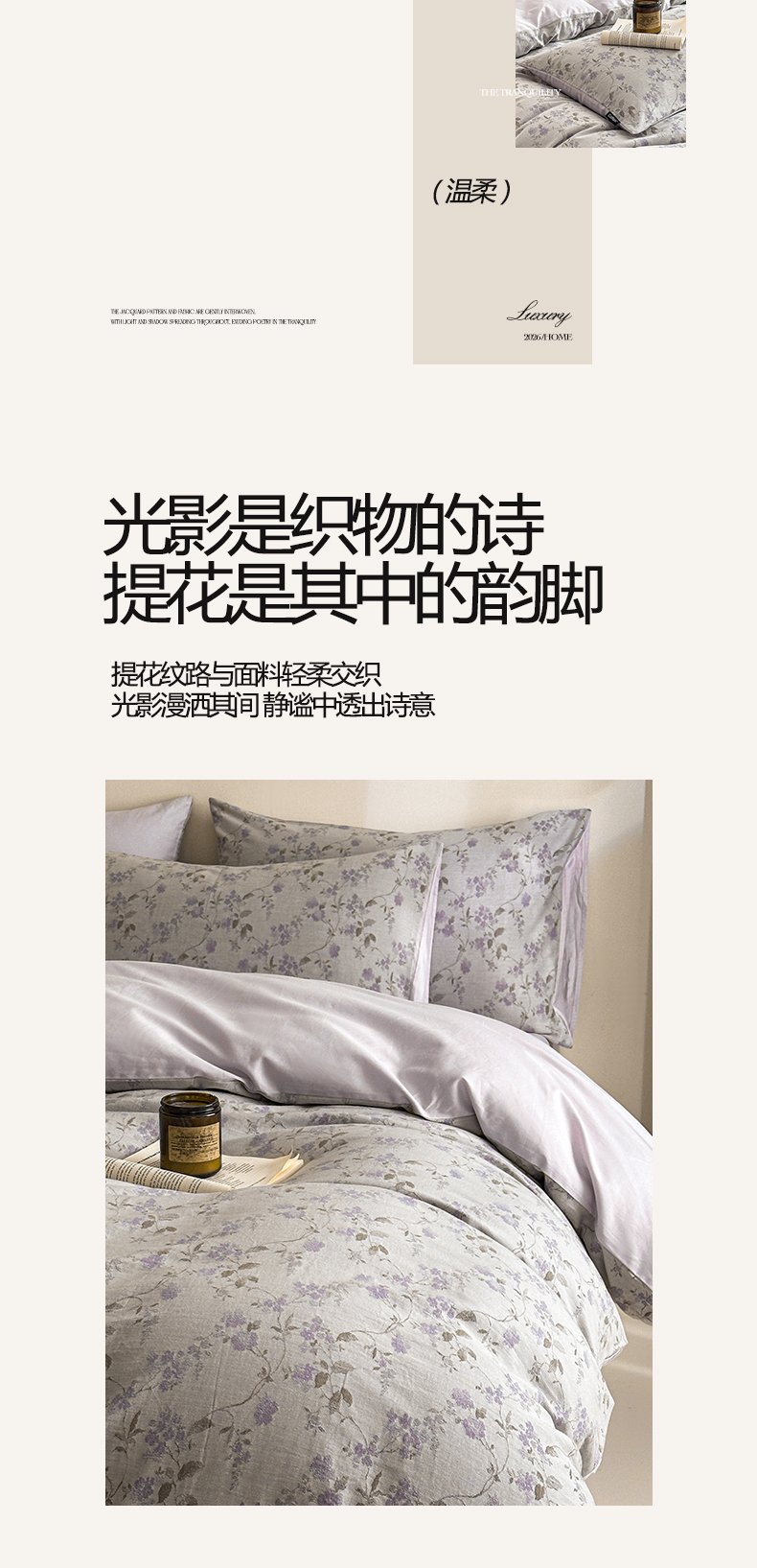当前位置: 91家纺网 > 商品网购 > 床品套件 > 四件套 > 全棉普通四件套 > 涵宸家纺 2026新款全棉提花色坊系列四件套 金禧-紫