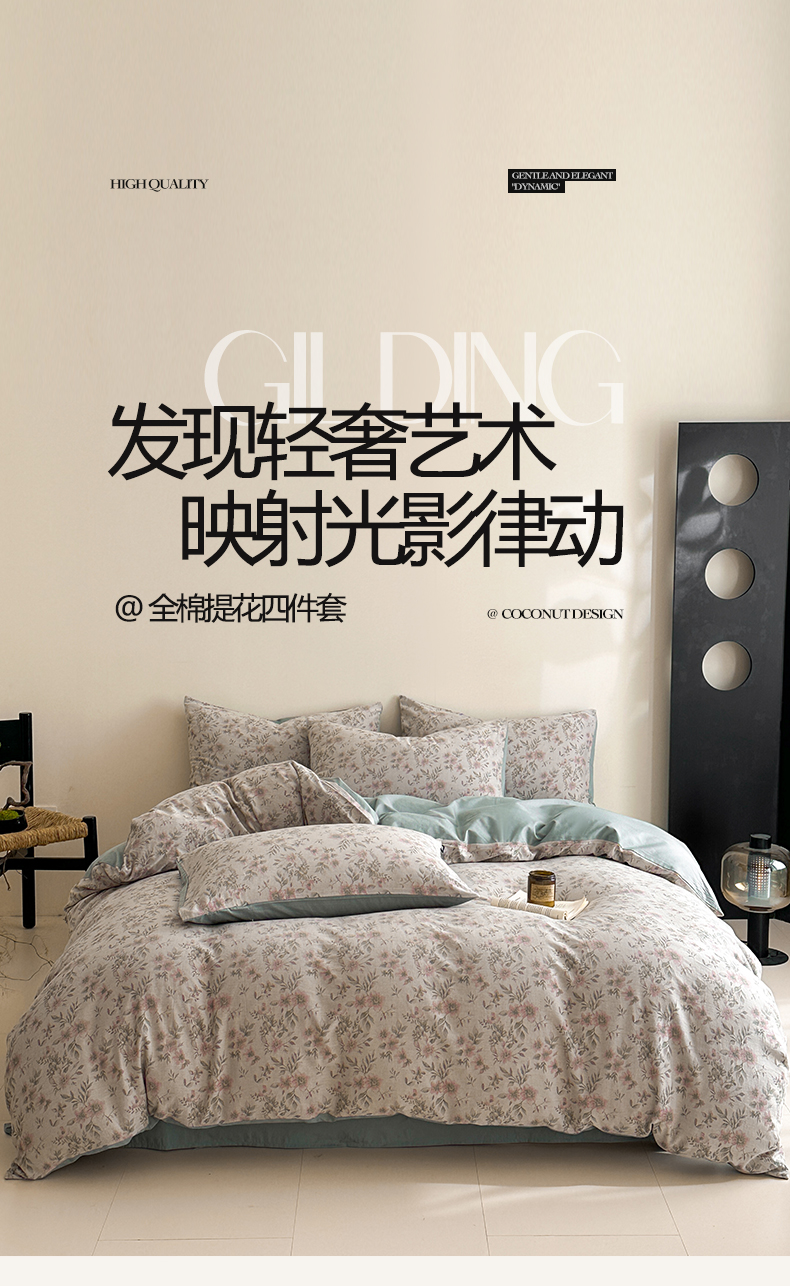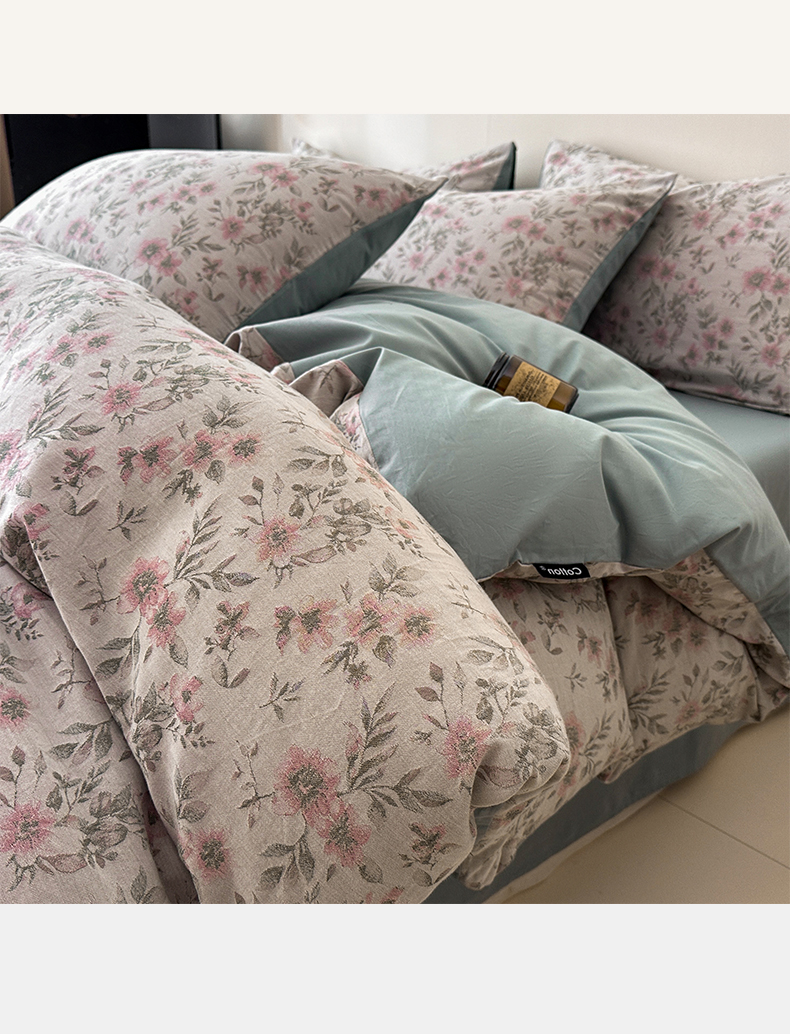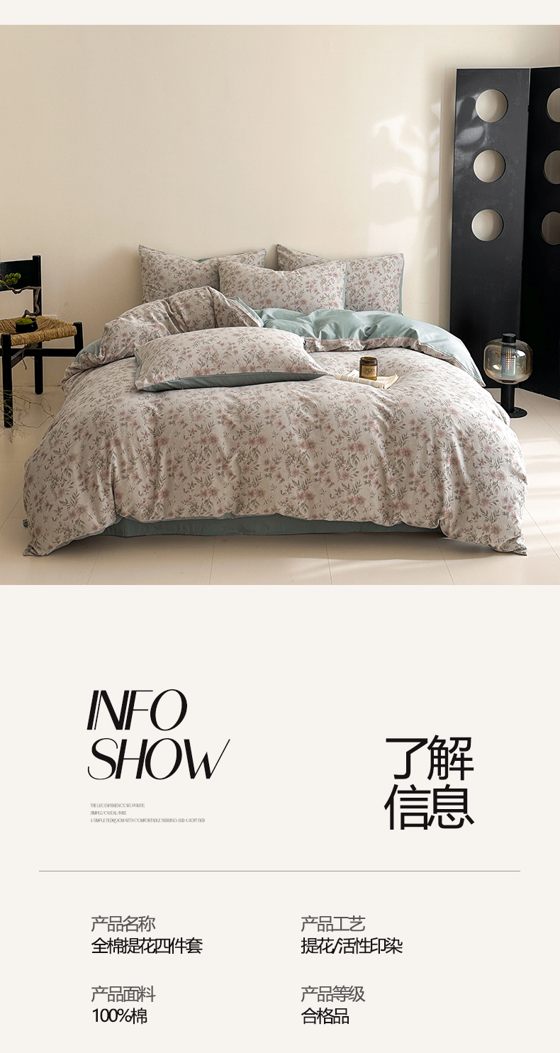 当前位置: 91家纺网 > 商品网购 > 床品套件 > 四件套 > 全棉普通四件套 > 涵宸家纺 2026新款全棉提花色坊系列四件套 素薇-粉绿