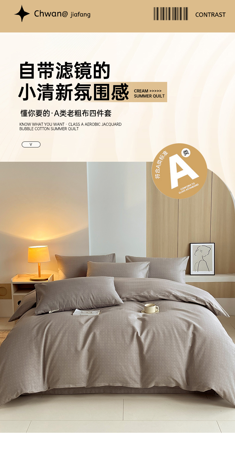 商品名称:春皖家纺 2026高端直播热卖非遗A类全棉老粗布加厚床单款三件套-普通款四件套 萎格咖