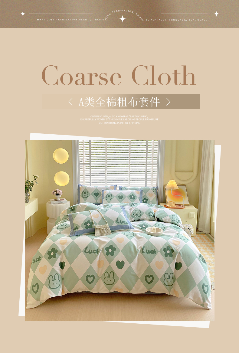 商品名称:春皖家纺 2026高端直播热卖非遗A类全棉老粗布加厚床单款三件套-工艺款四件套 幸运