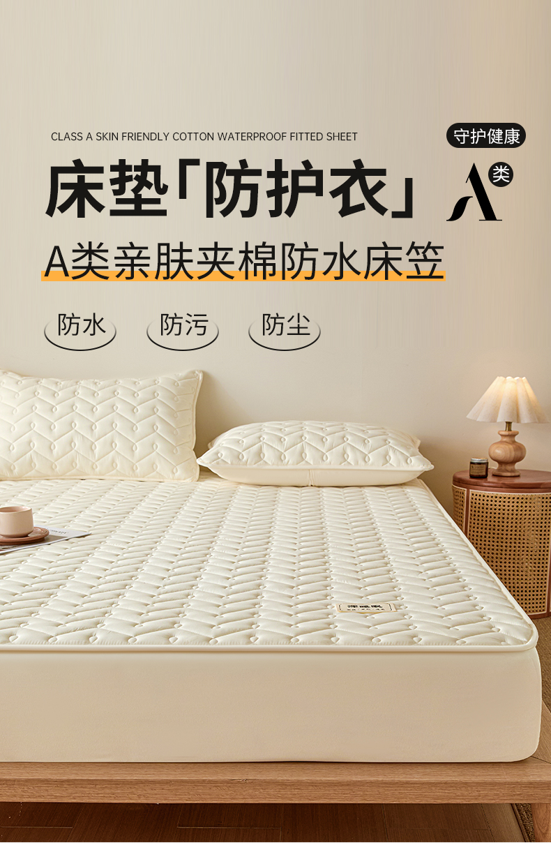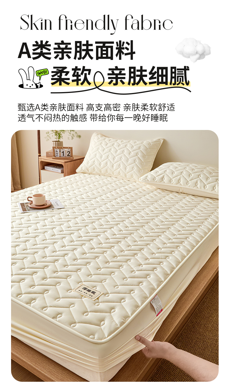 (总)九亭家纺 2026新款A类深睡眠防水夹棉床笠,深睡眠-米白,深睡眠-豆沙,深睡眠-灰色,深睡眠-奶咖,深睡眠-奶昔白,深睡眠-水绿,深睡眠-雾蓝