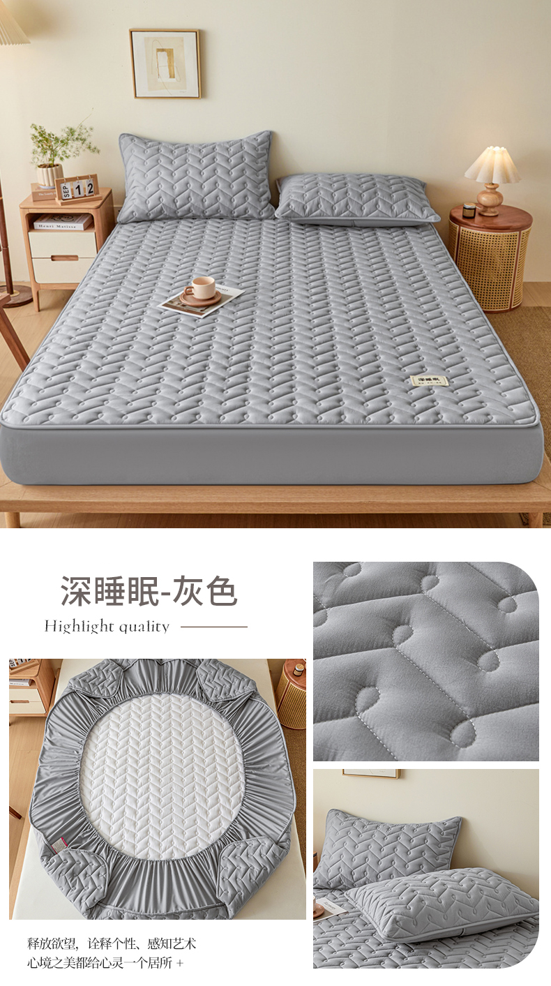 • 91家纺网 家纺一手货源 找家纺 九亭家纺 2026新款A类深睡眠防水夹棉床笠 深睡眠-灰色
