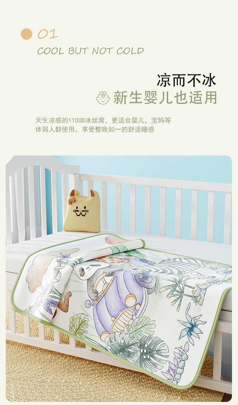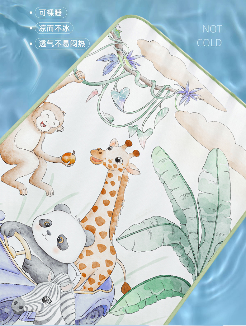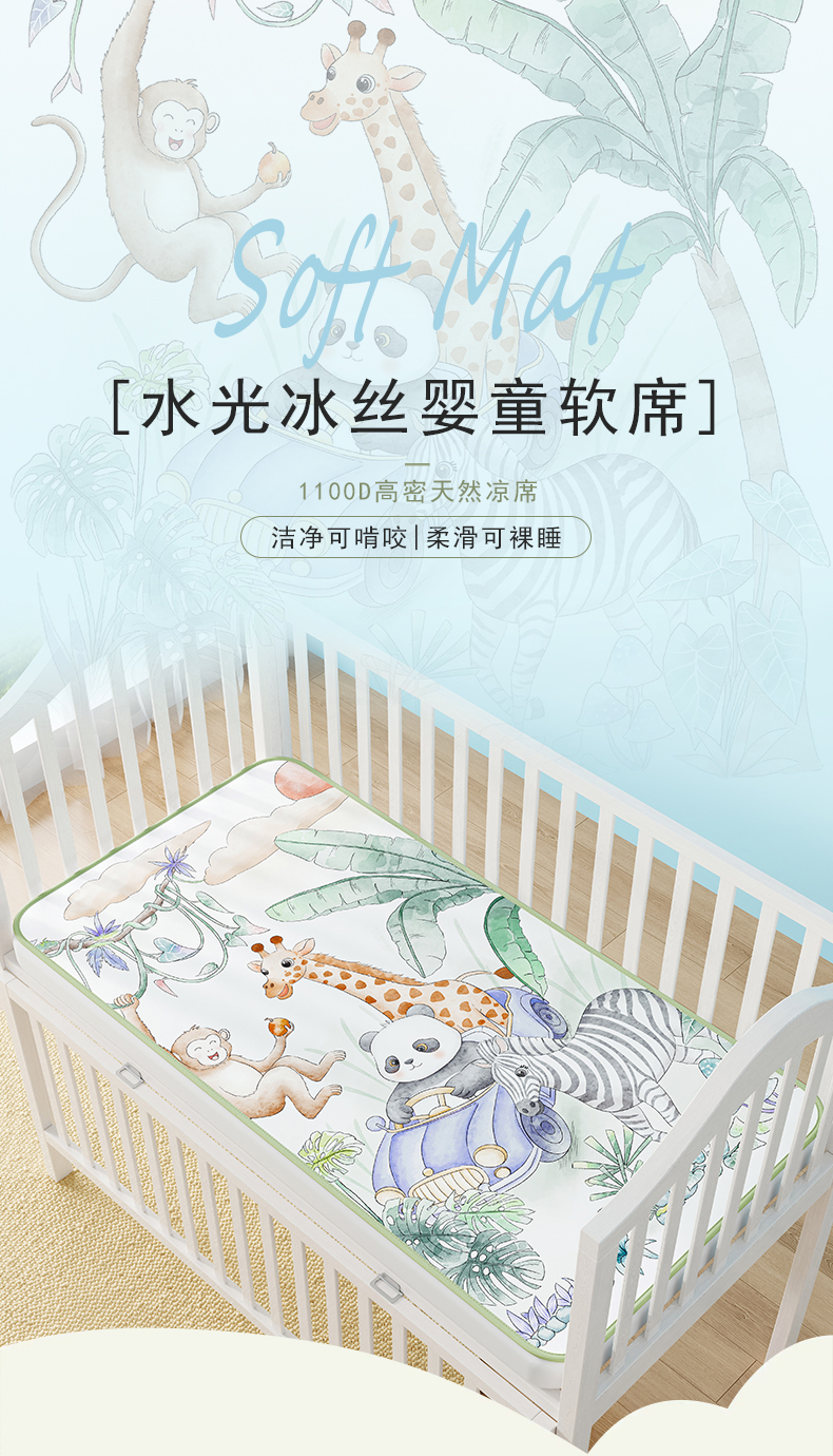 商品名称:奇丝雅 2026新款A类数码印花大版1100D水光冰丝凉席凉席婴儿儿童新生【三明治网底】 动物乐园【三明治网底】
