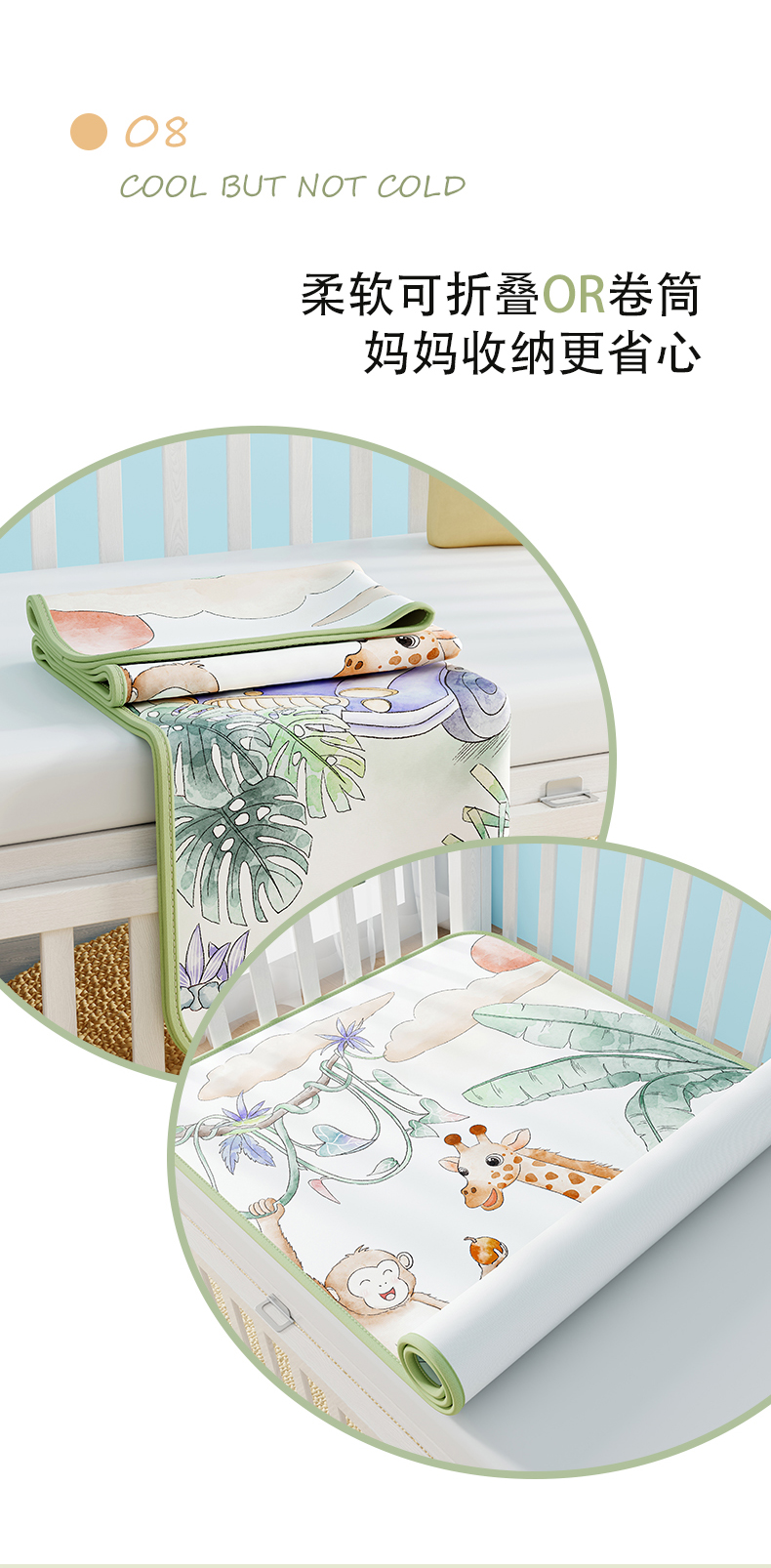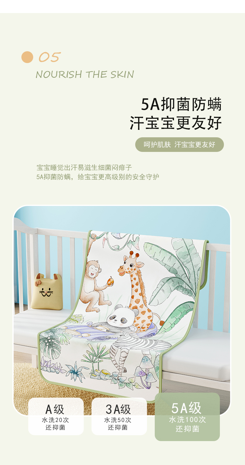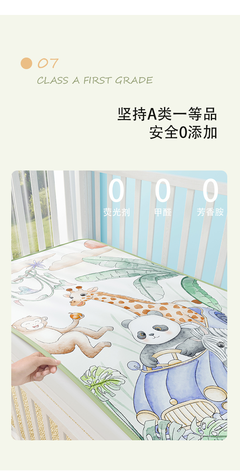 商品名称:奇丝雅 2026新款A类数码印花大版1100D水光冰丝凉席凉席婴儿儿童新生【三明治网底】 动物乐园【三明治网底】