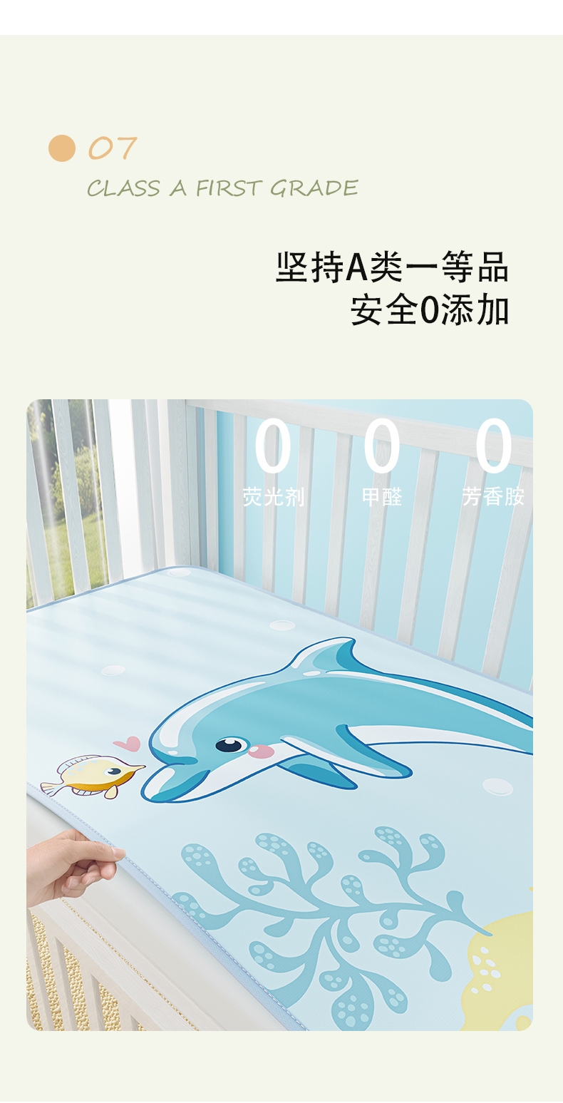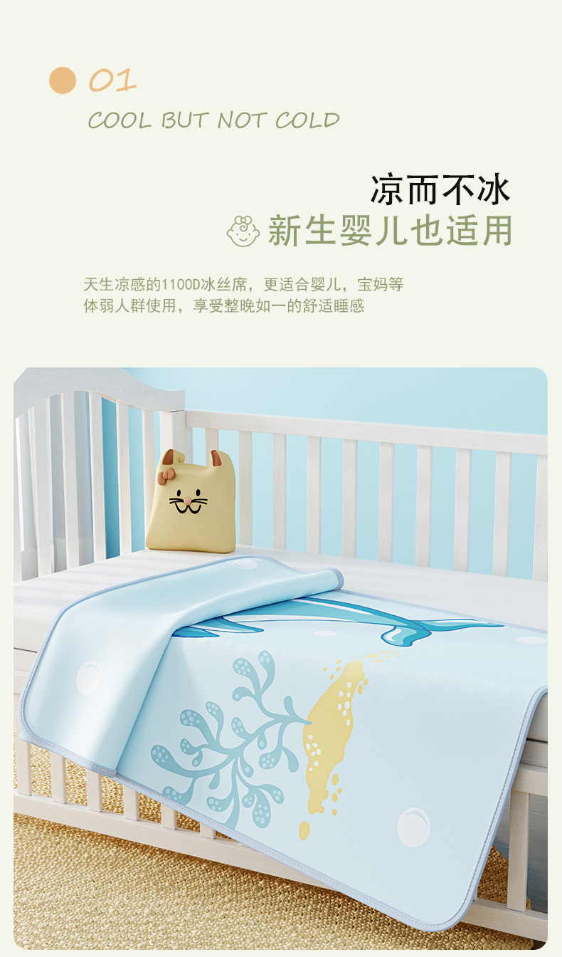 商品名称:2026款A类数码印花大版1100D水光冰丝凉席婴儿儿童新生小宝宝床幼儿园床拼接床冰丝席可机洗空调席