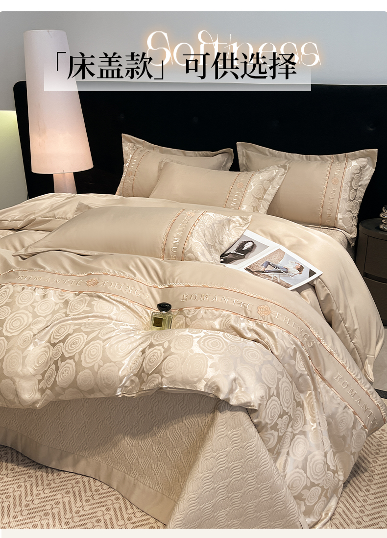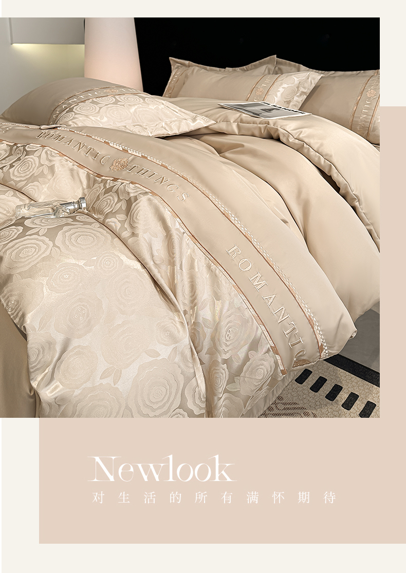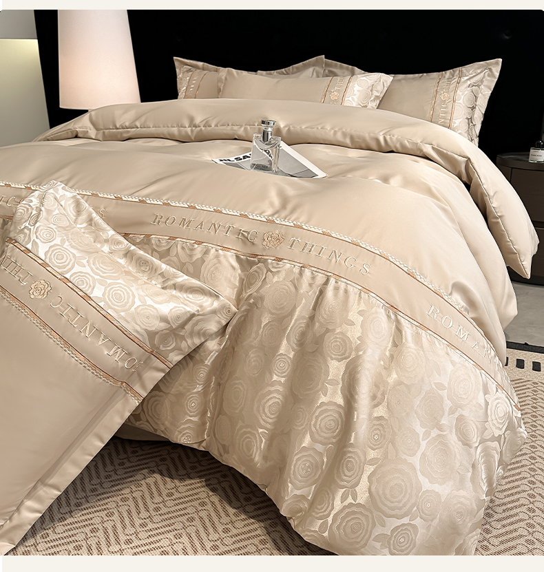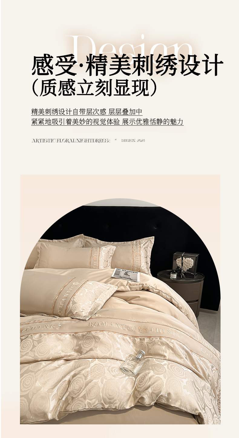当前位置: 91家纺网 > 商品网购 > 床品套件 > 四件套 > 其它四件套 > 金牛座家纺 2026春夏新款细斜纹贡缎亮丝提花重工刺绣四件套-爱恋 爱恋-香槟
