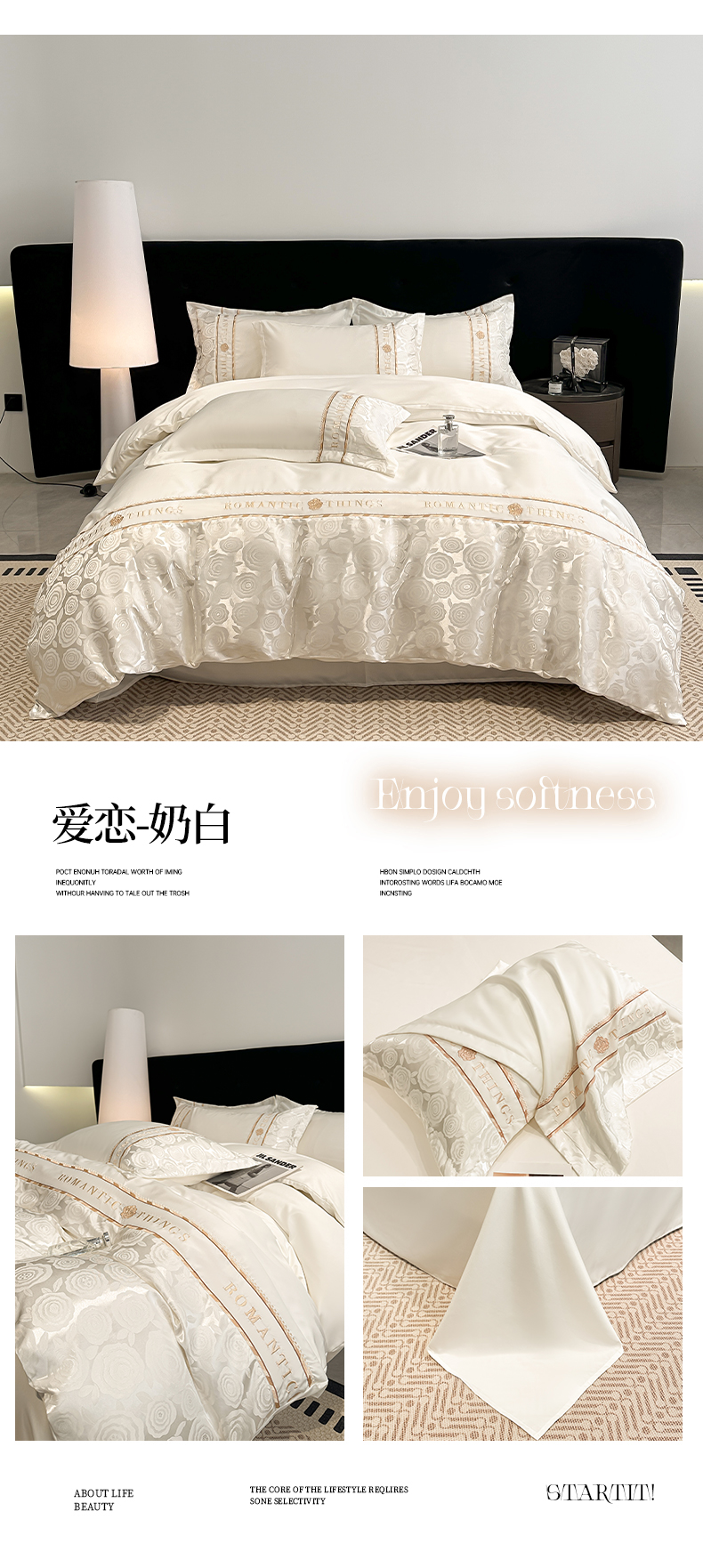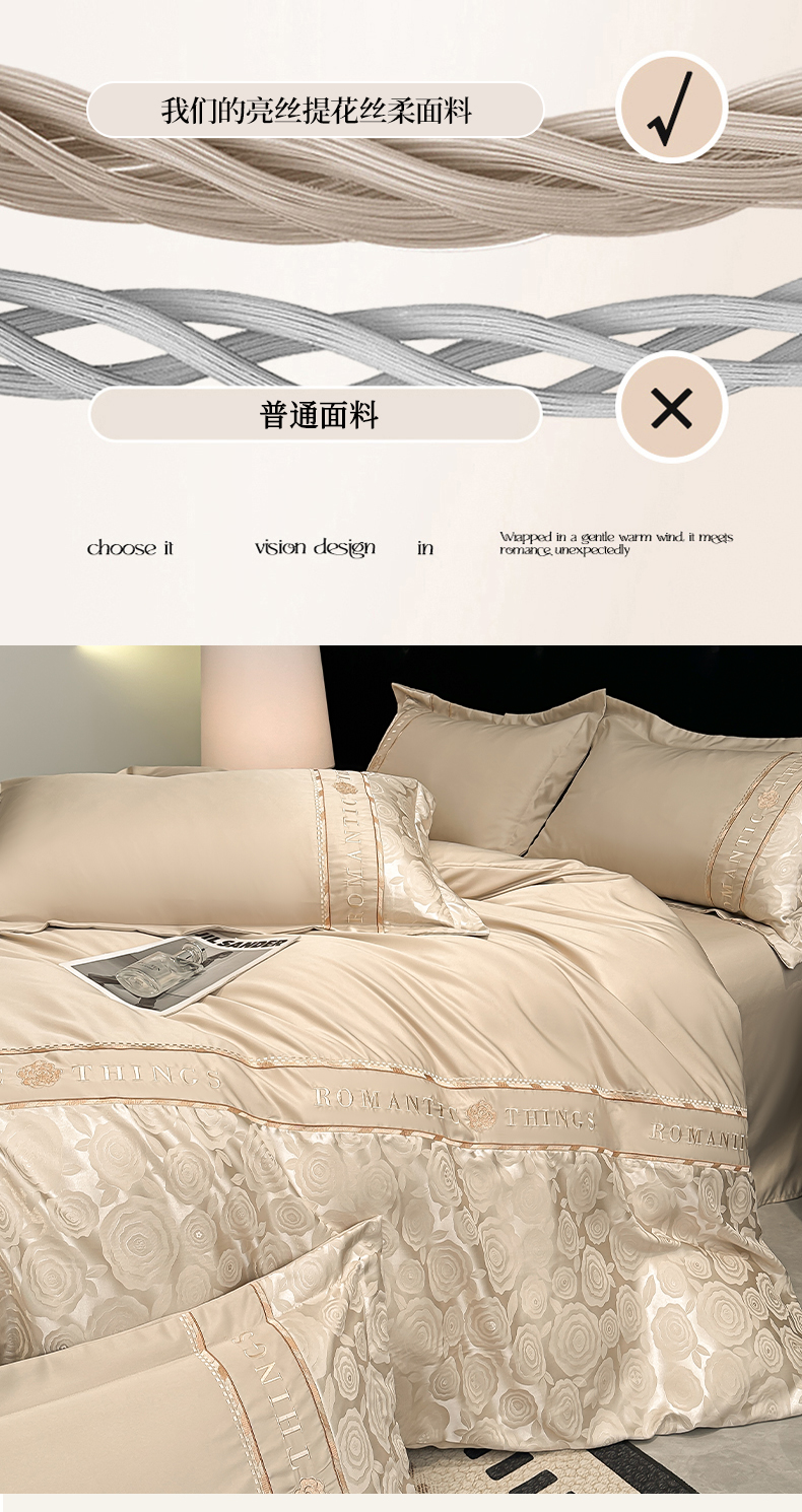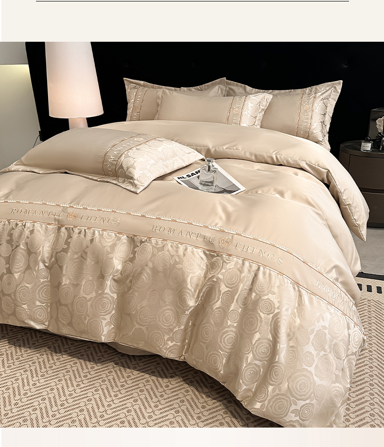 当前位置: 91家纺网 > 商品网购 > 床品套件 > 四件套 > 其它四件套 > 金牛座家纺 2026春夏新款细斜纹贡缎亮丝提花重工刺绣四件套-爱恋 爱恋-香槟
