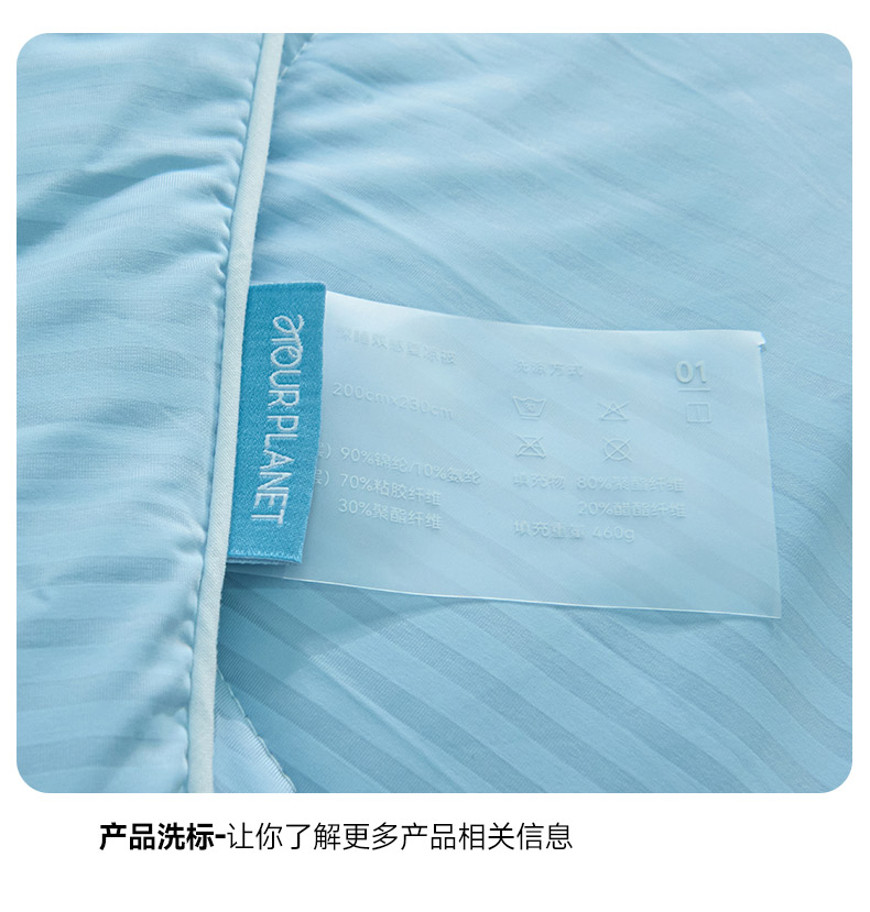 • 91家纺网 家纺一手货源 找家纺 库里梦家纺 2026新款100%真锦氨无印提花凉感空调被夏被夏凉被 条纹天蓝