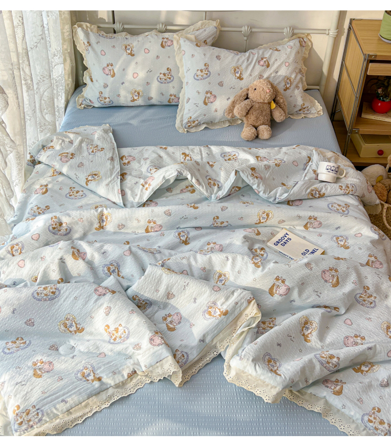 (总)十里居 2026新款蕾丝花边款印花水洗棉夏凉被,春意,贝尔花园,草莓可爱熊,粉色爱心,狗狗乐园,蝴蝶结-咖,蝴蝶结-绿,卡皮南瓜,软萌恐龙,小奶牛,樱桃点点,郁金香