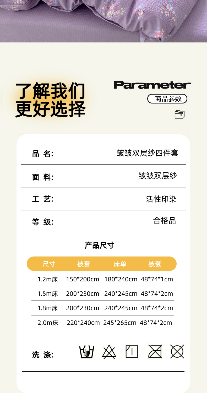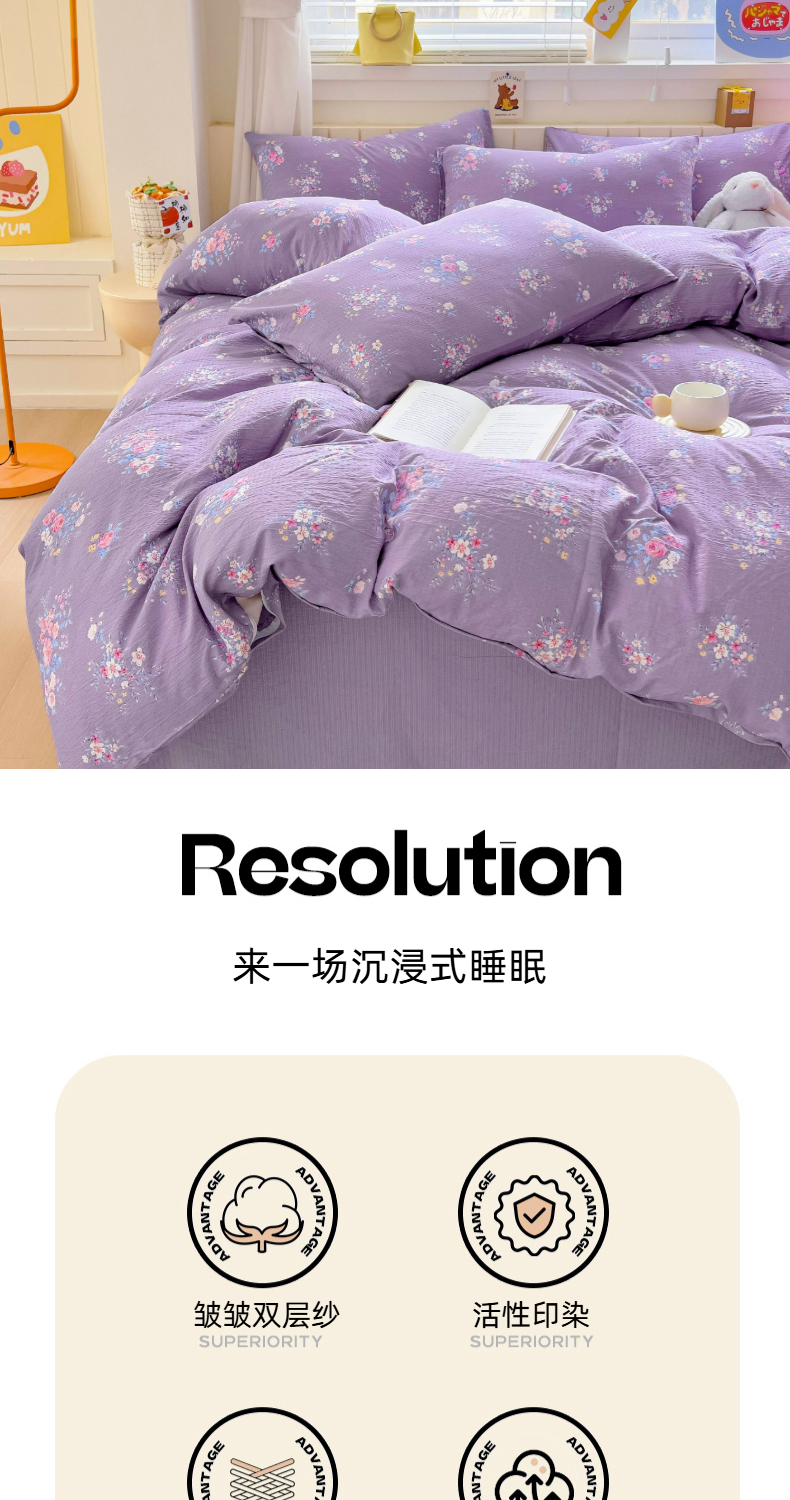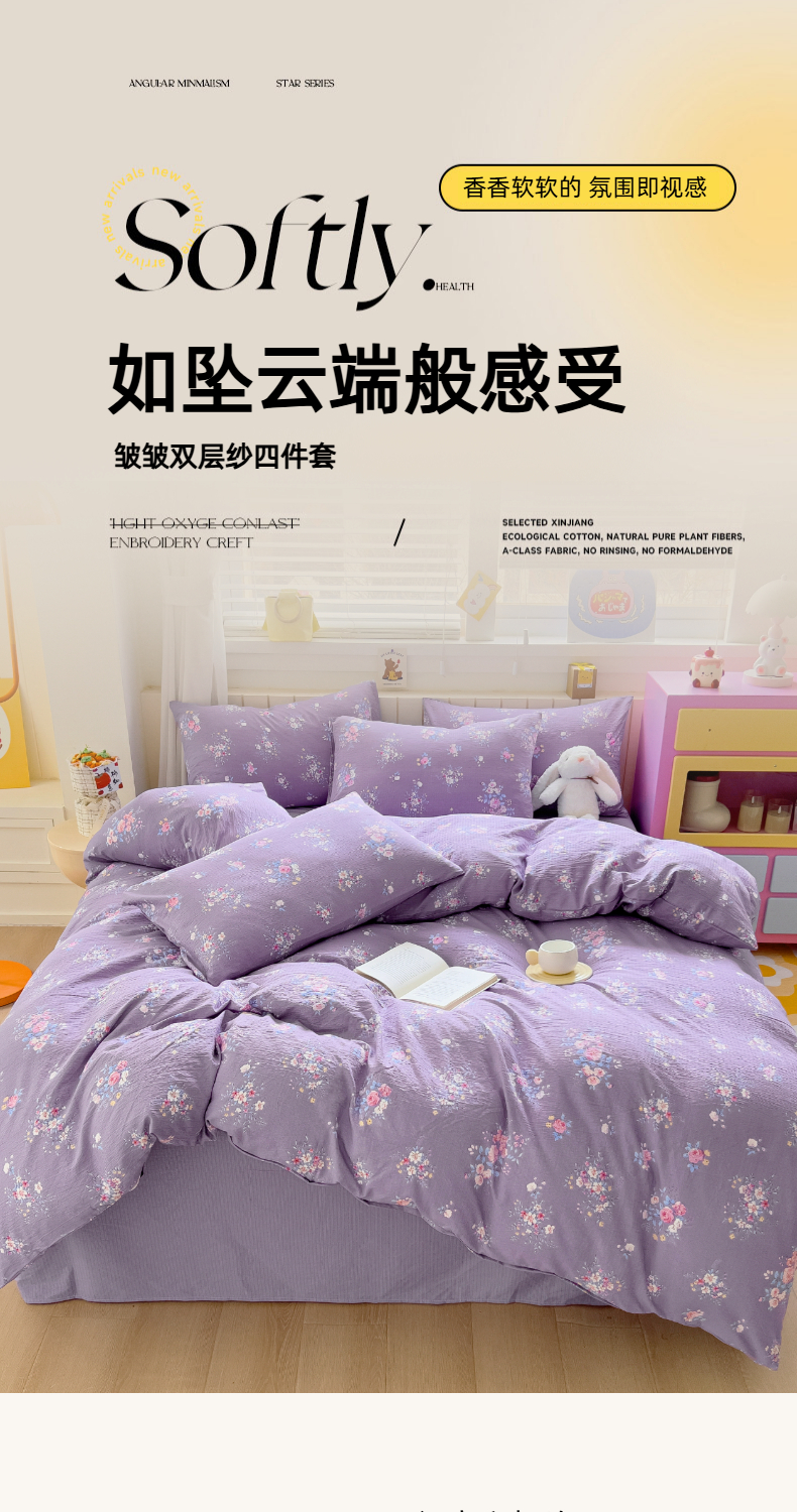 商品名称:(总)找底底家纺 2026新款泡泡棉小清新双层纱床裙款四件套