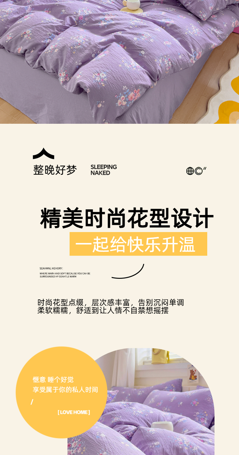 (总)找底底家纺 2026新款A类泡泡棉双层纱四件套花边夏被四件套,波点爱心,春不晚,红豆蔻,花沐,兰蔻,萌宠拾光,青橘兔,雾兰格兔,西高地,小确幸,小若欢,小樱桃,熊仔,遇见-格桔,紫蕊奶芙,紫苏