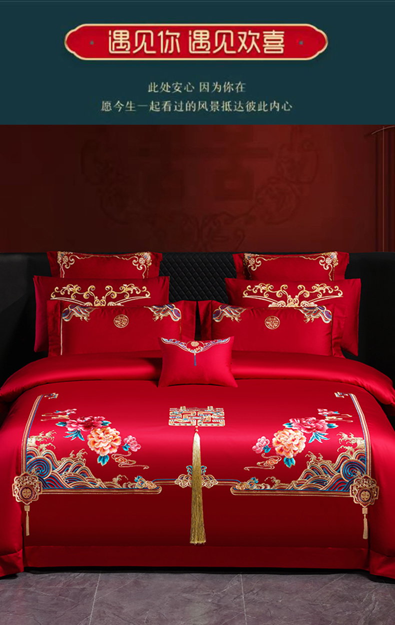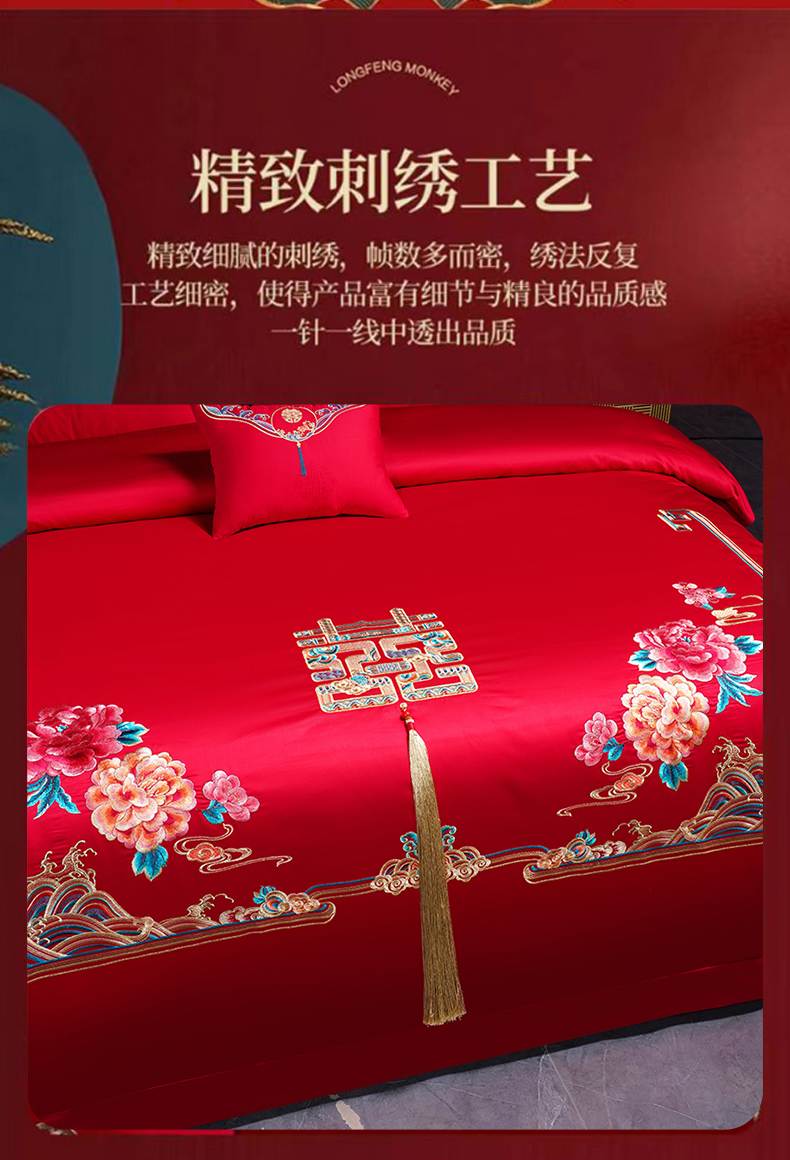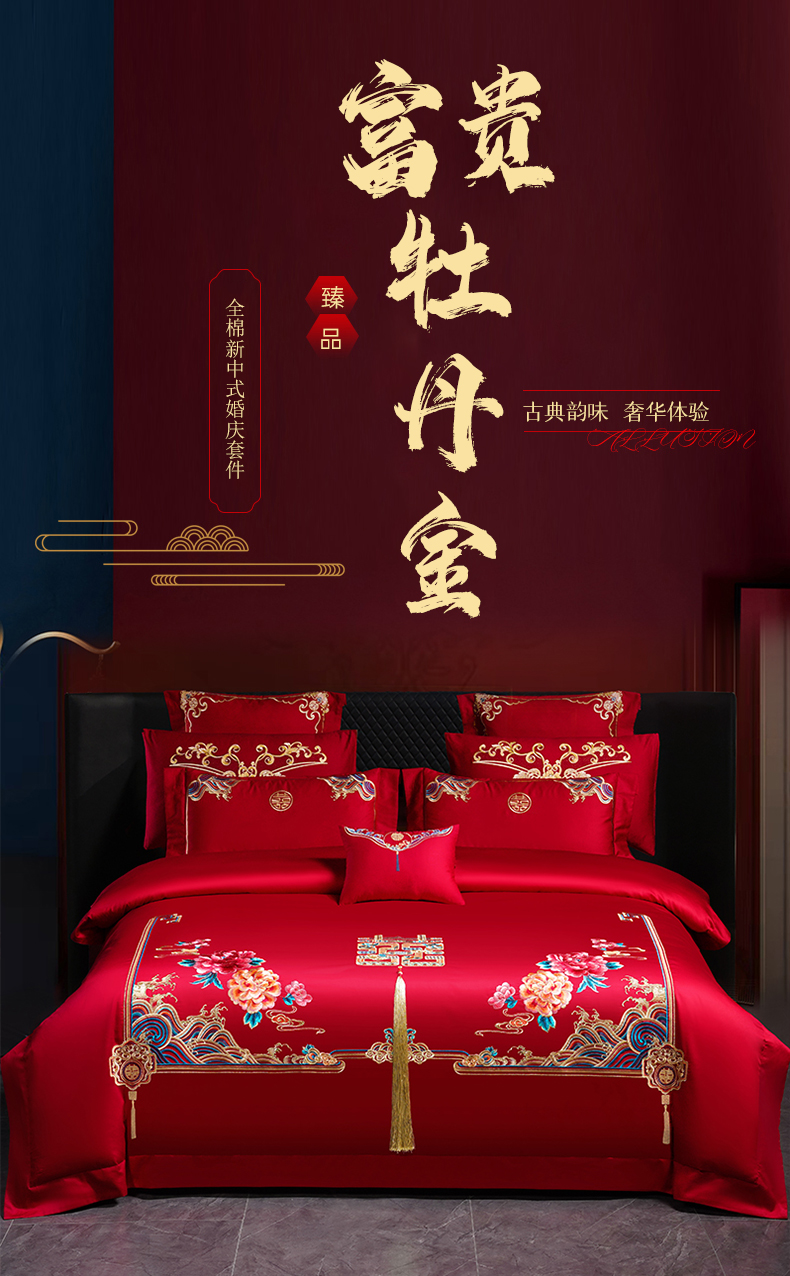 当前位置: 91家纺网 > 商品网购 > 床品套件 > 四件套 > 婚庆四件套 > 博之洋婚庆 2026新款全棉纯棉长绒棉刺绣婚庆四件套多件套 富贵牡丹-金