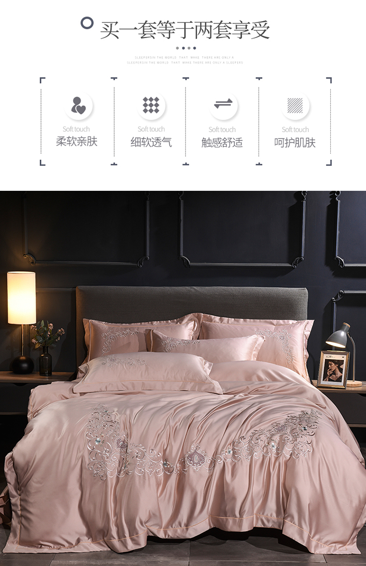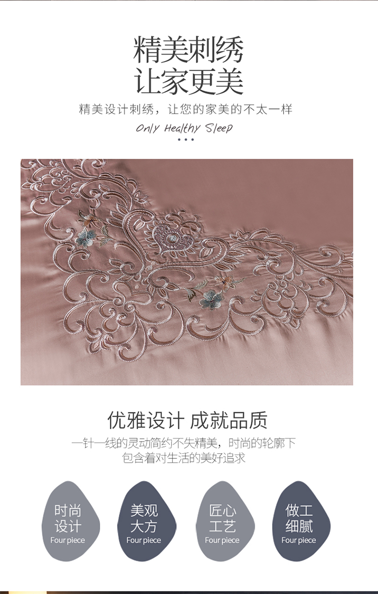 安妮 2020新款水洗真丝欧若拉刺绣四件套 欧若拉-香槟