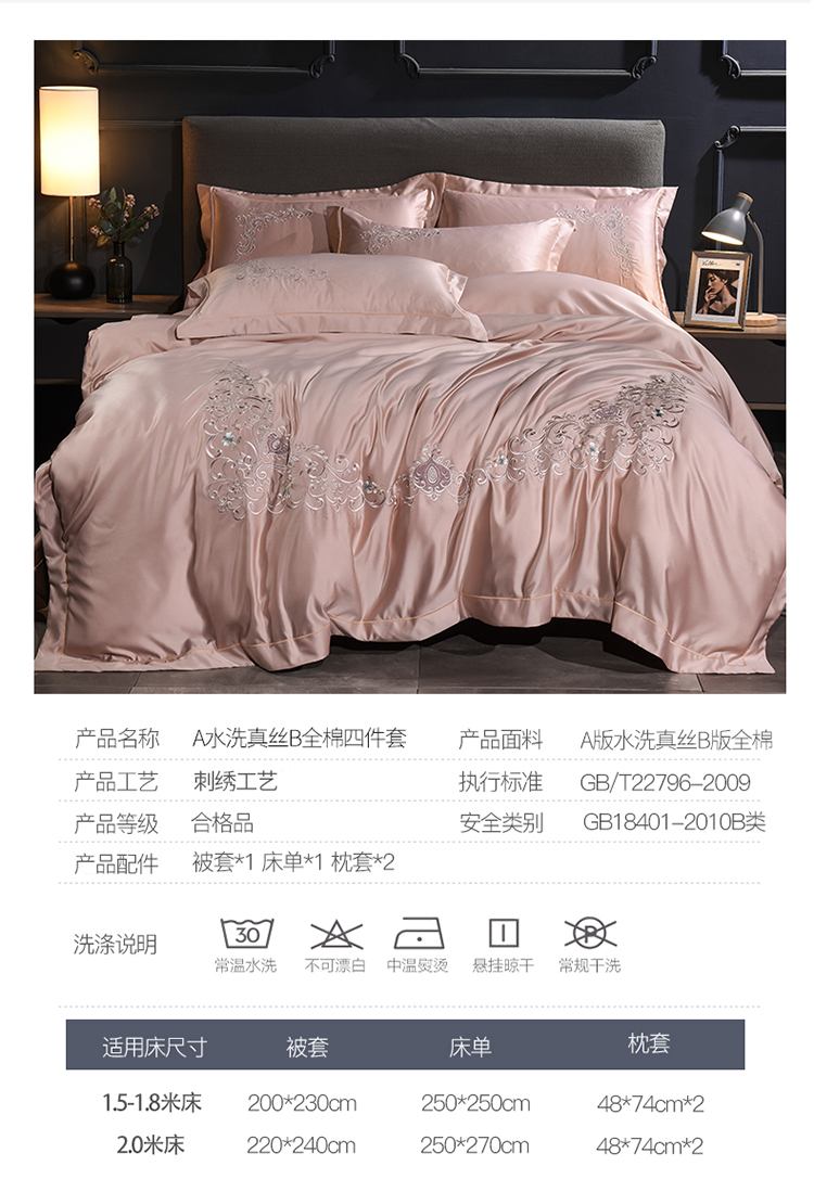商品名称:安妮 2020新款水洗真丝欧若拉刺绣四件套 欧若拉-香槟