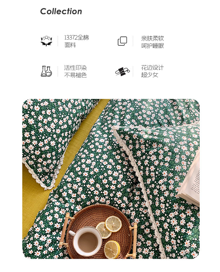 商品名称:澳萝拉 2021新款全棉小花边四件套 邂逅