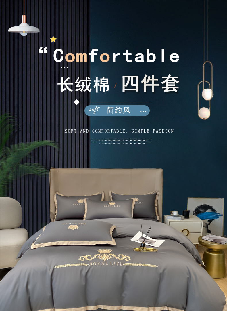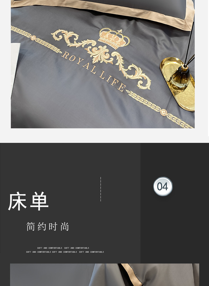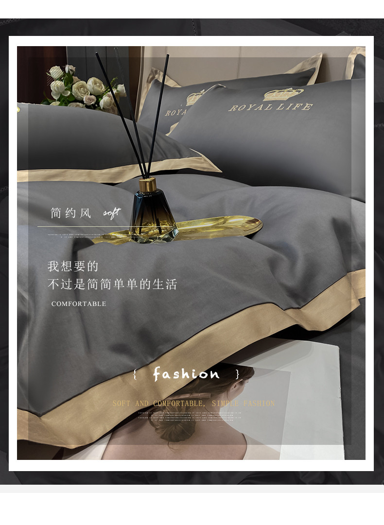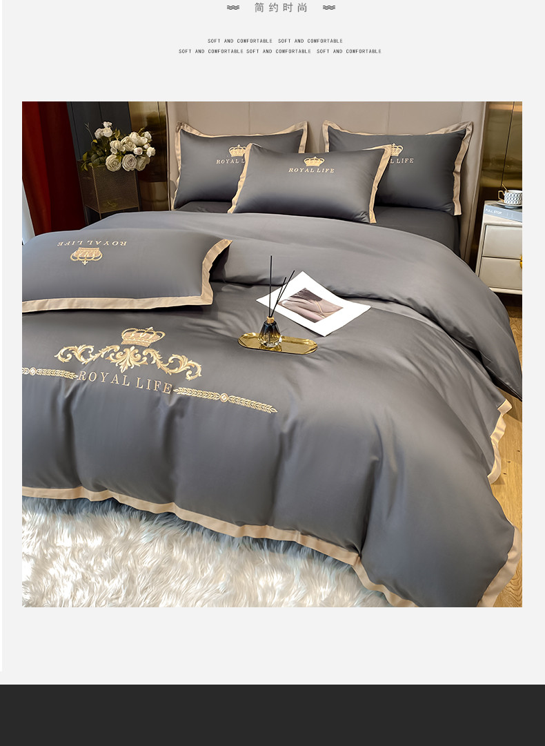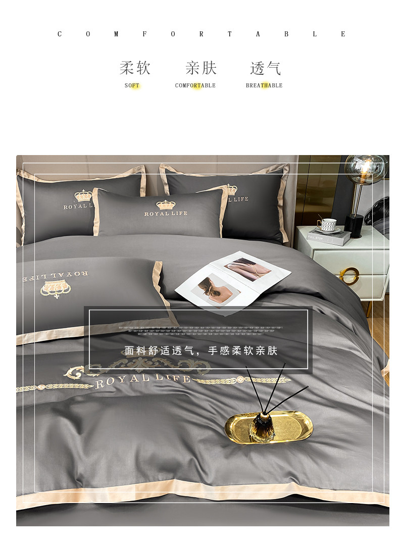 商品名称:安妮家居 2021新款皇冠120s长绒棉四件套 绅士灰