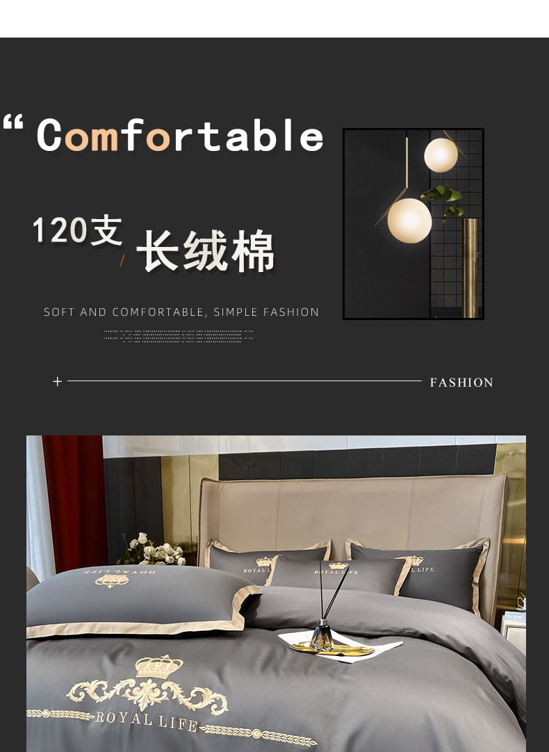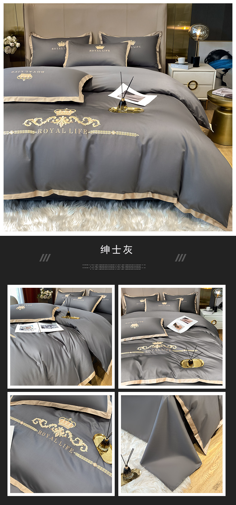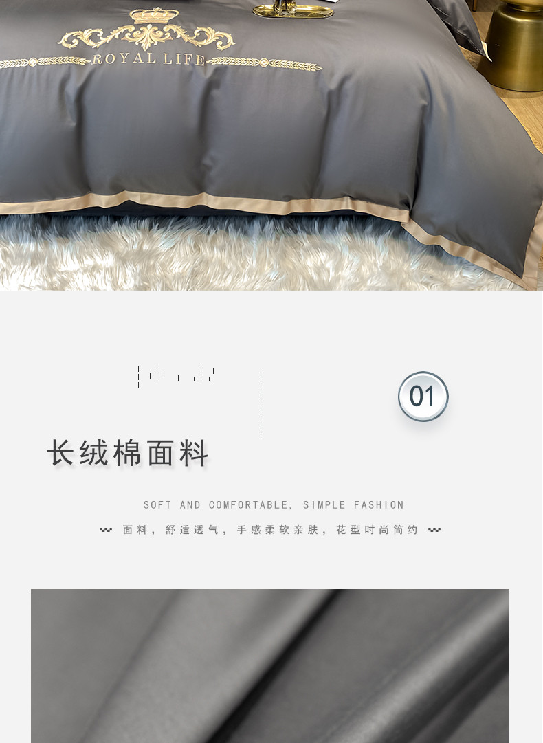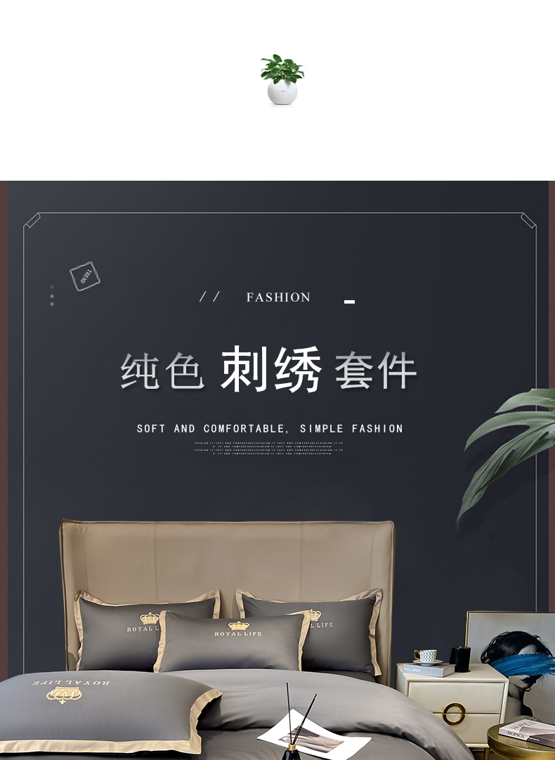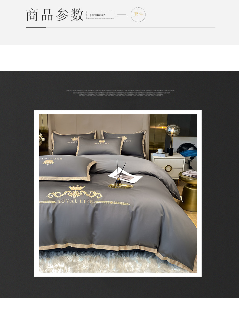 商品名称:安妮家居 2021新款皇冠120s长绒棉四件套 绅士灰