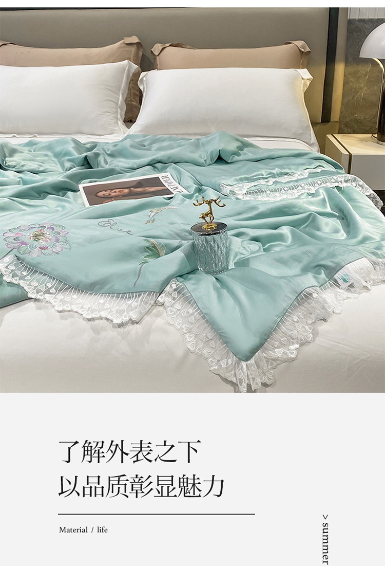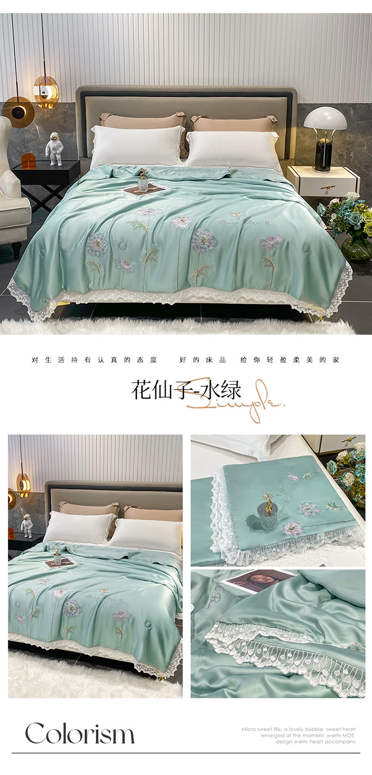 商品名称:吾秀 2022新款50S莱赛尔天丝刺绣夏被-花仙子 花仙子-水绿