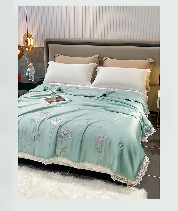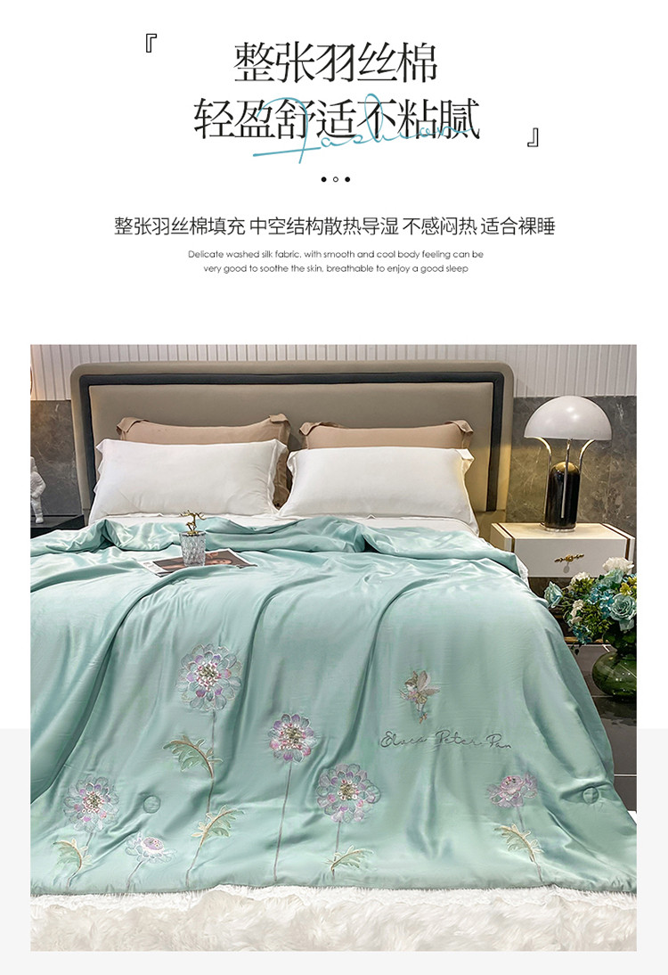 吾秀 2022新款50S莱赛尔天丝刺绣夏被-花仙子 花仙子-水绿