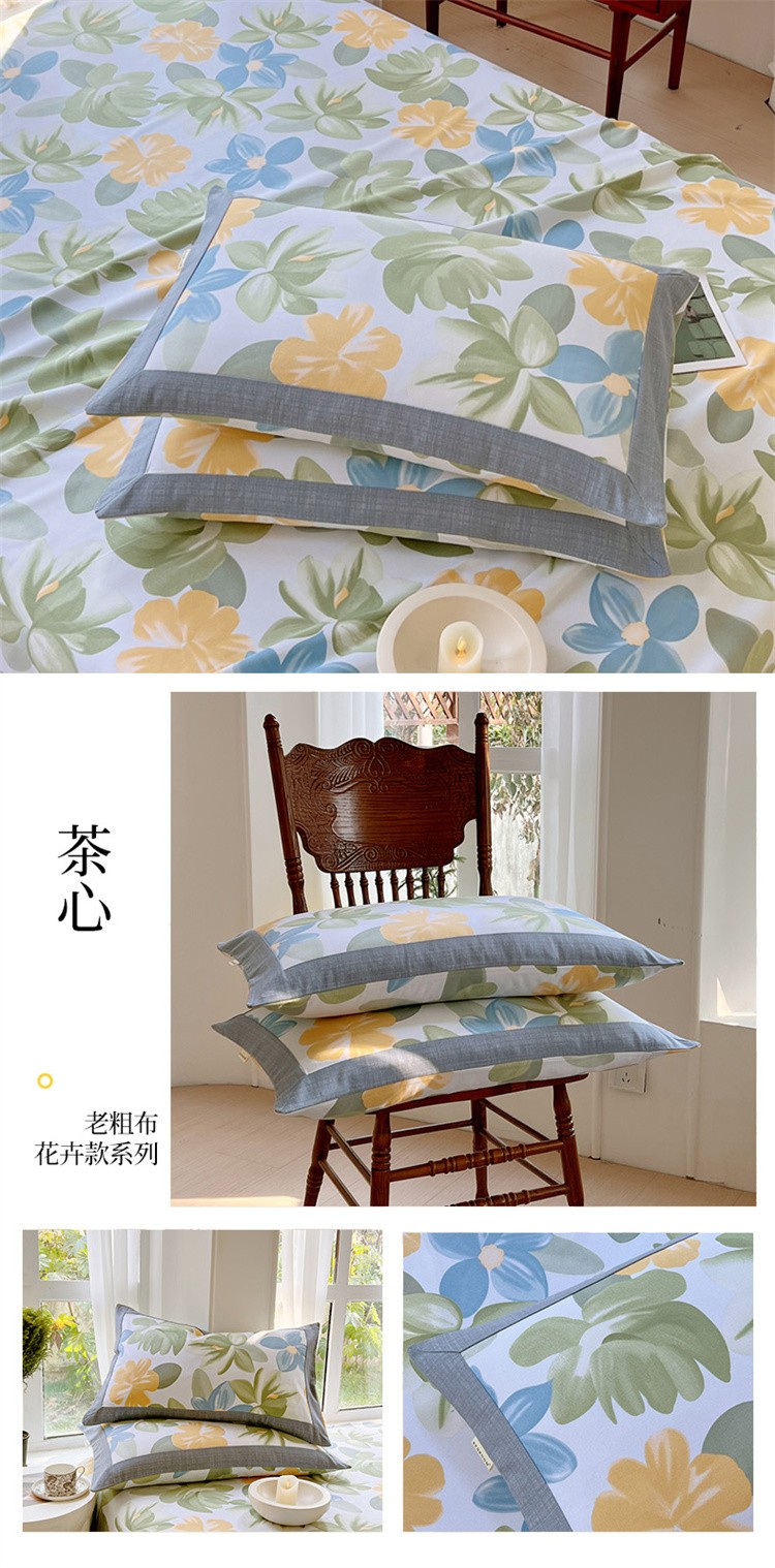 春皖家纺 2023新款花卉款老粗布单品枕套系列 茶心
