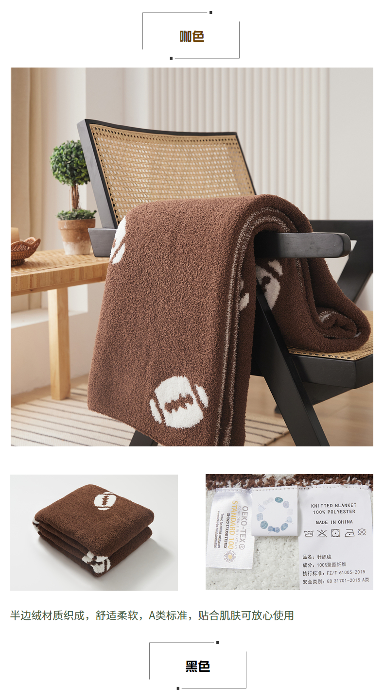 商品名称:(总)暖绵绵家纺 2025新款半边绒毛毯-橄榄球