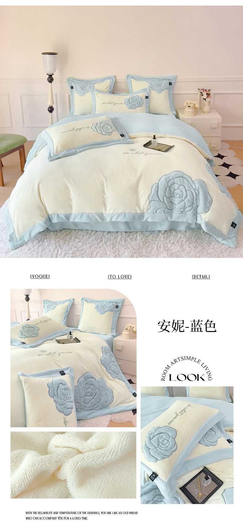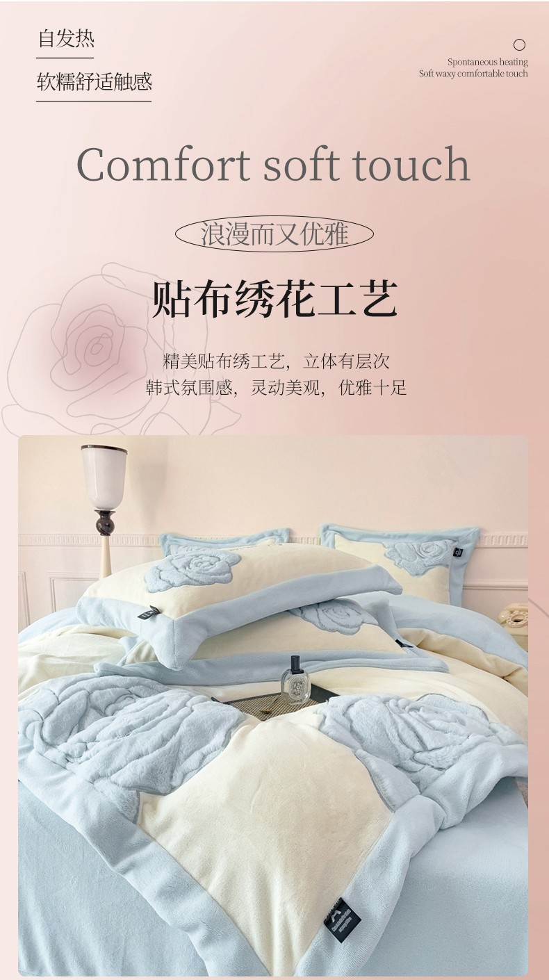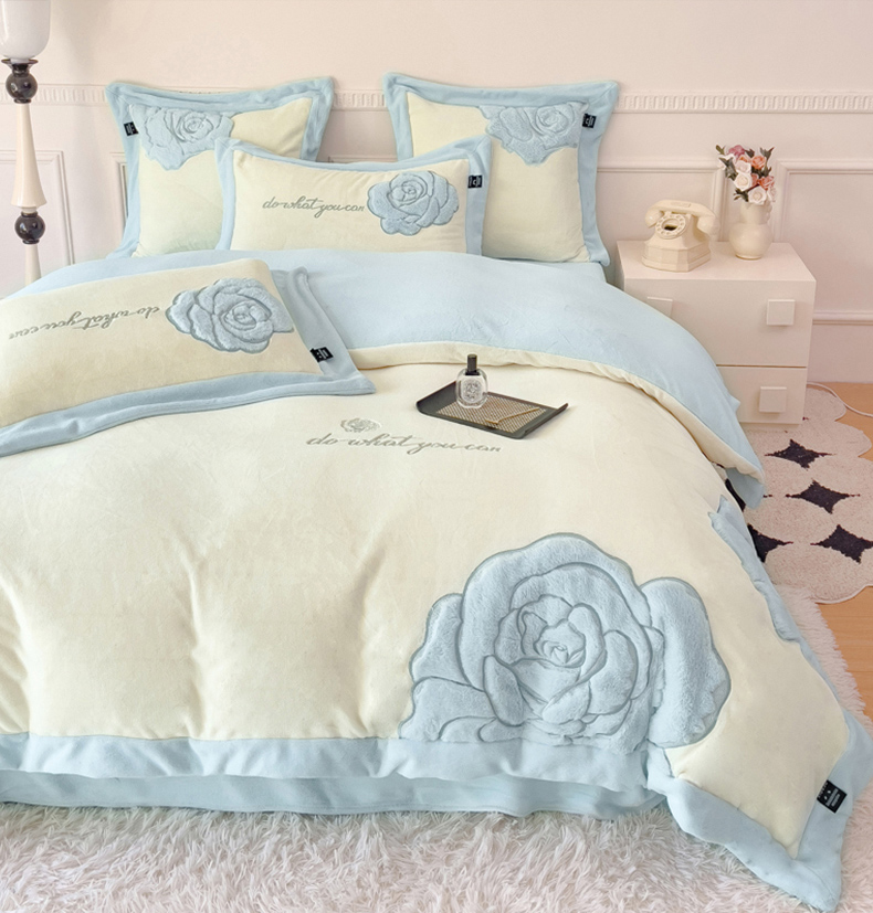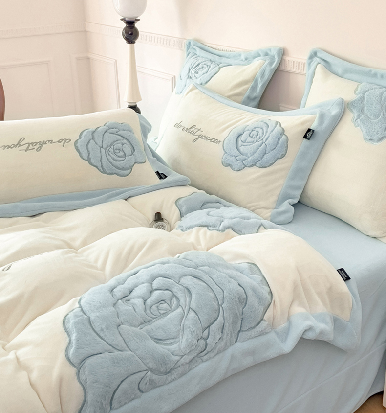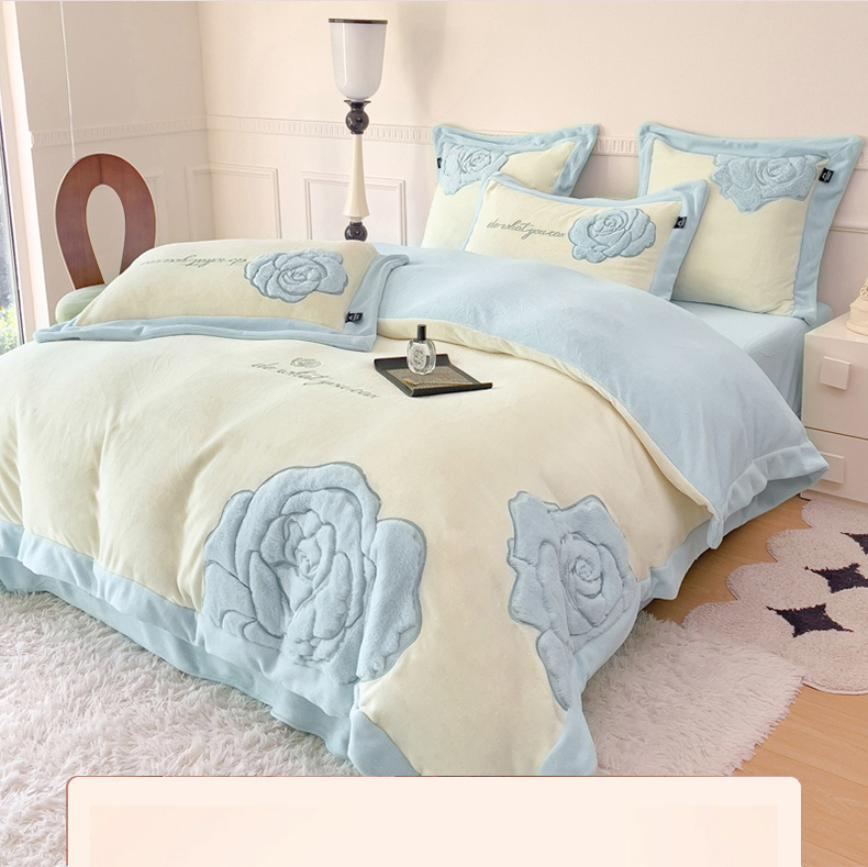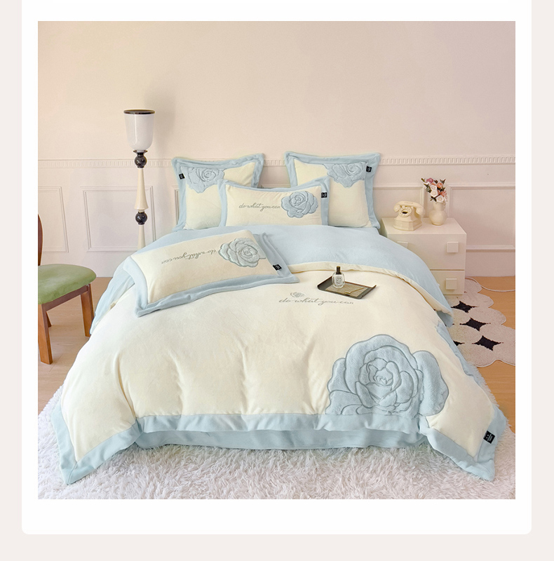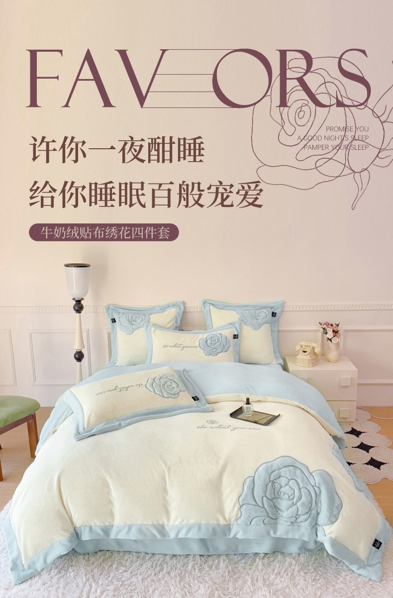 品家居 2025新款牛奶绒贴布绣花四件套-安妮 安妮-蓝