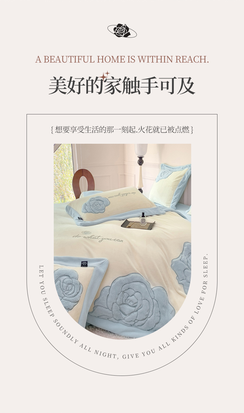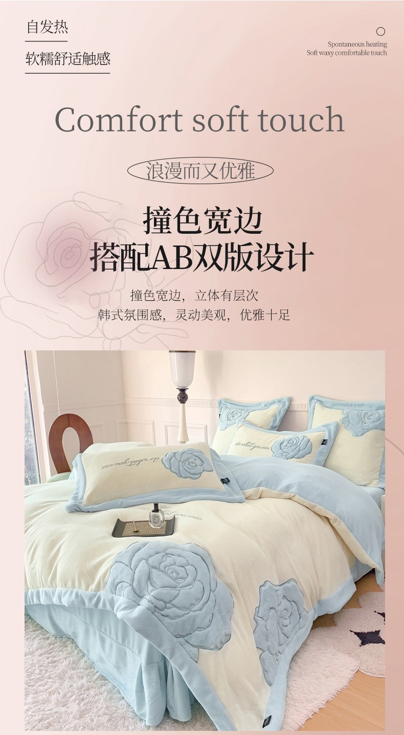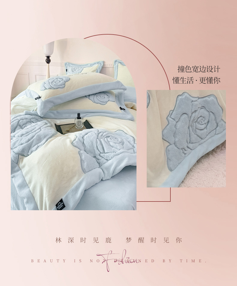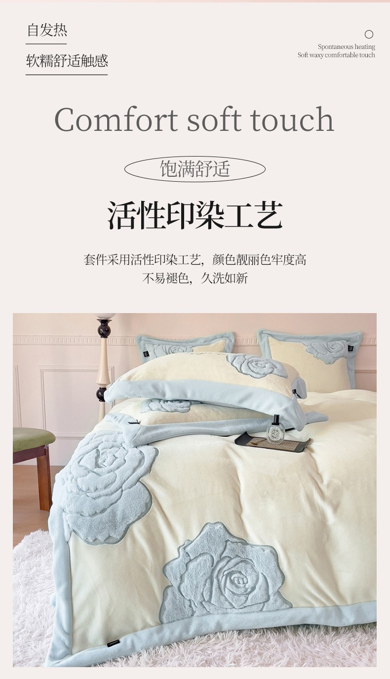 (总) 品家居 2025新款5D雕花牛奶绒四件套-心动玫瑰,粉拼灰,黄拼灰,蓝拼灰
