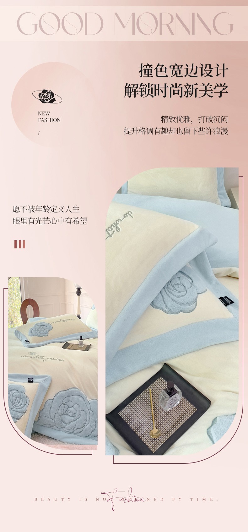 (总)品家居 2025新款5D雕花牛奶绒绣花大拼角四件套-岁月静好,粉色,蓝色,秋黄
