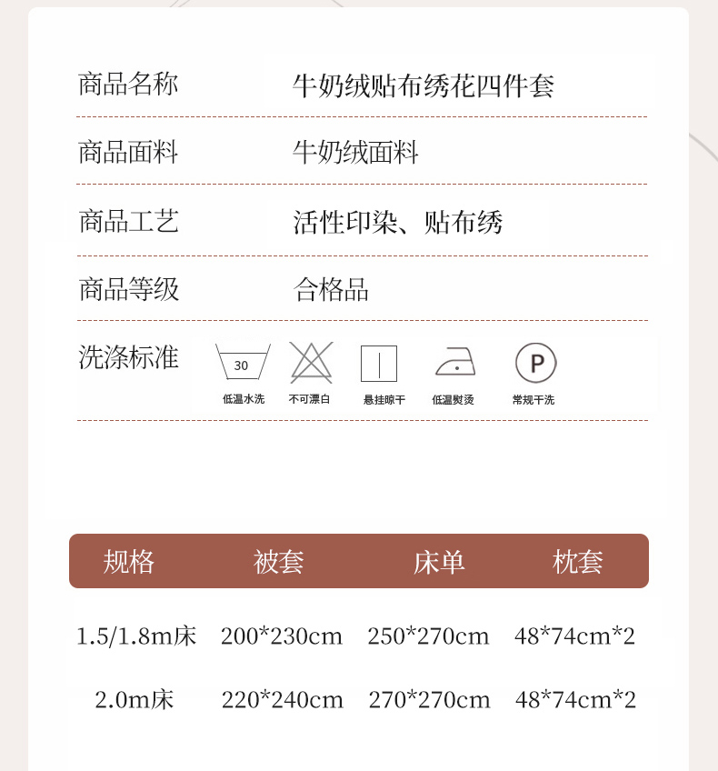 商品名称:品家居 2025新款牛奶绒贴布绣花四件套-安妮 安妮-蓝