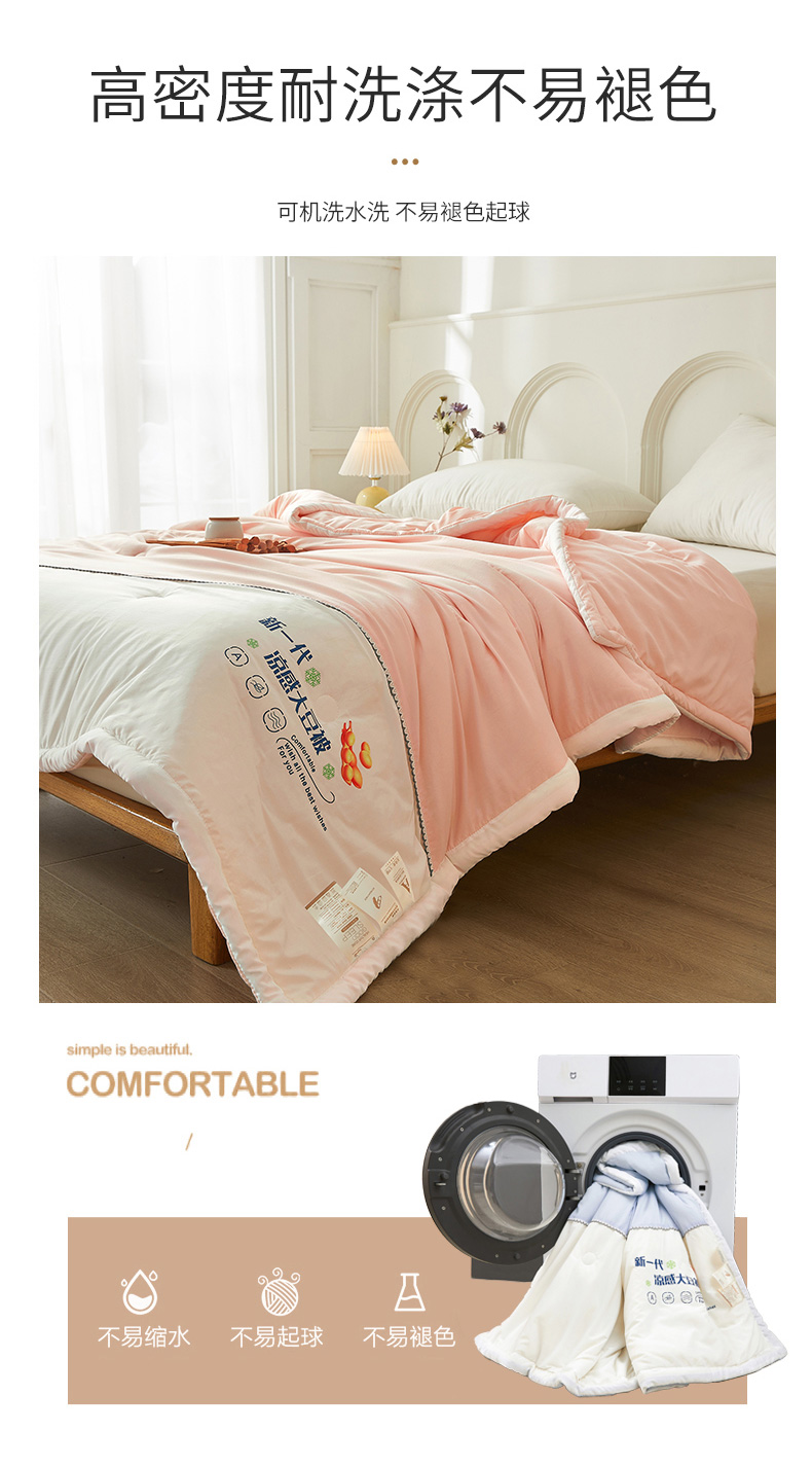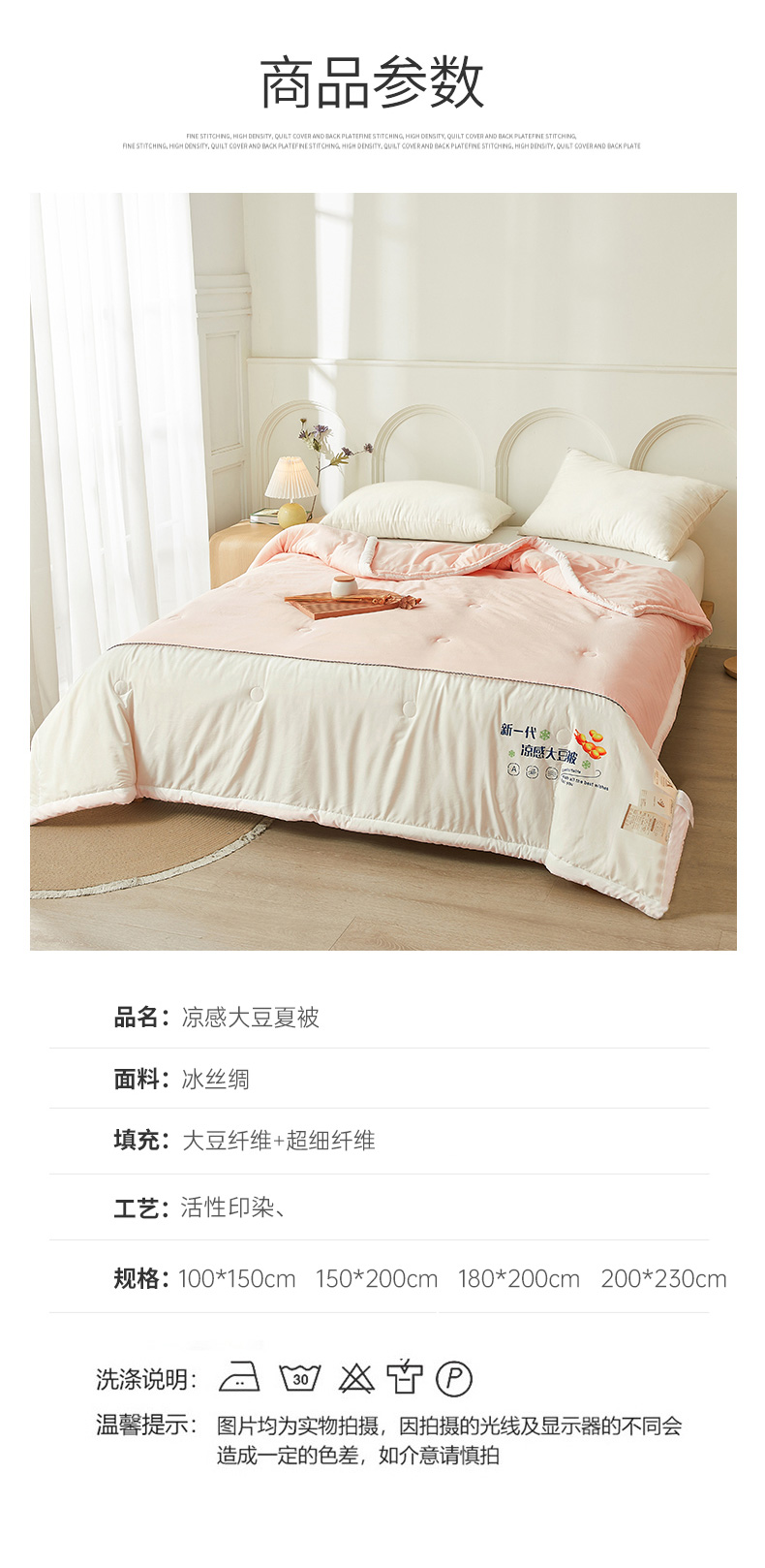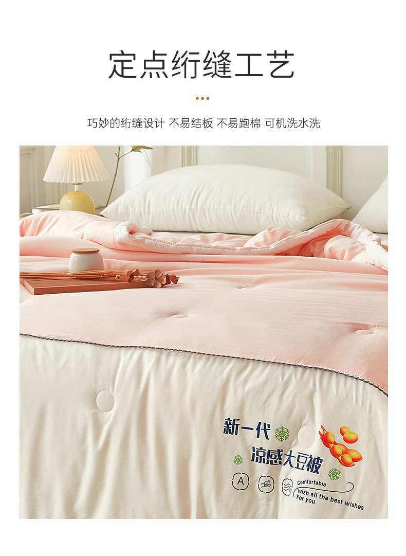 商品名称:钰博2024新款冰丝绸凉感夏被空调被夏凉被大豆被 粉+白