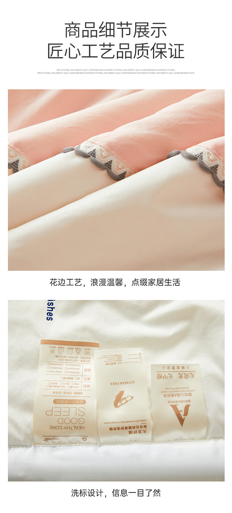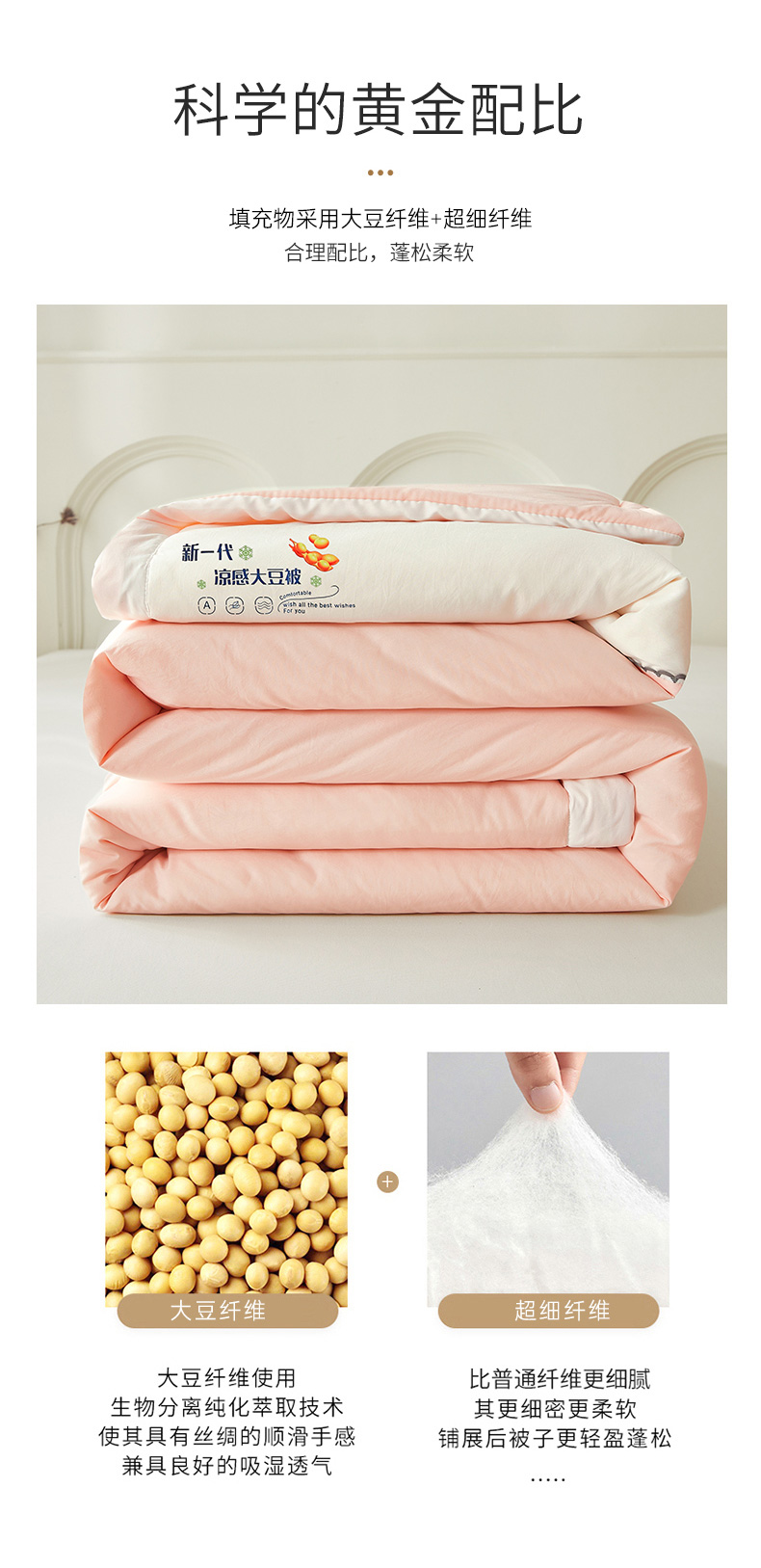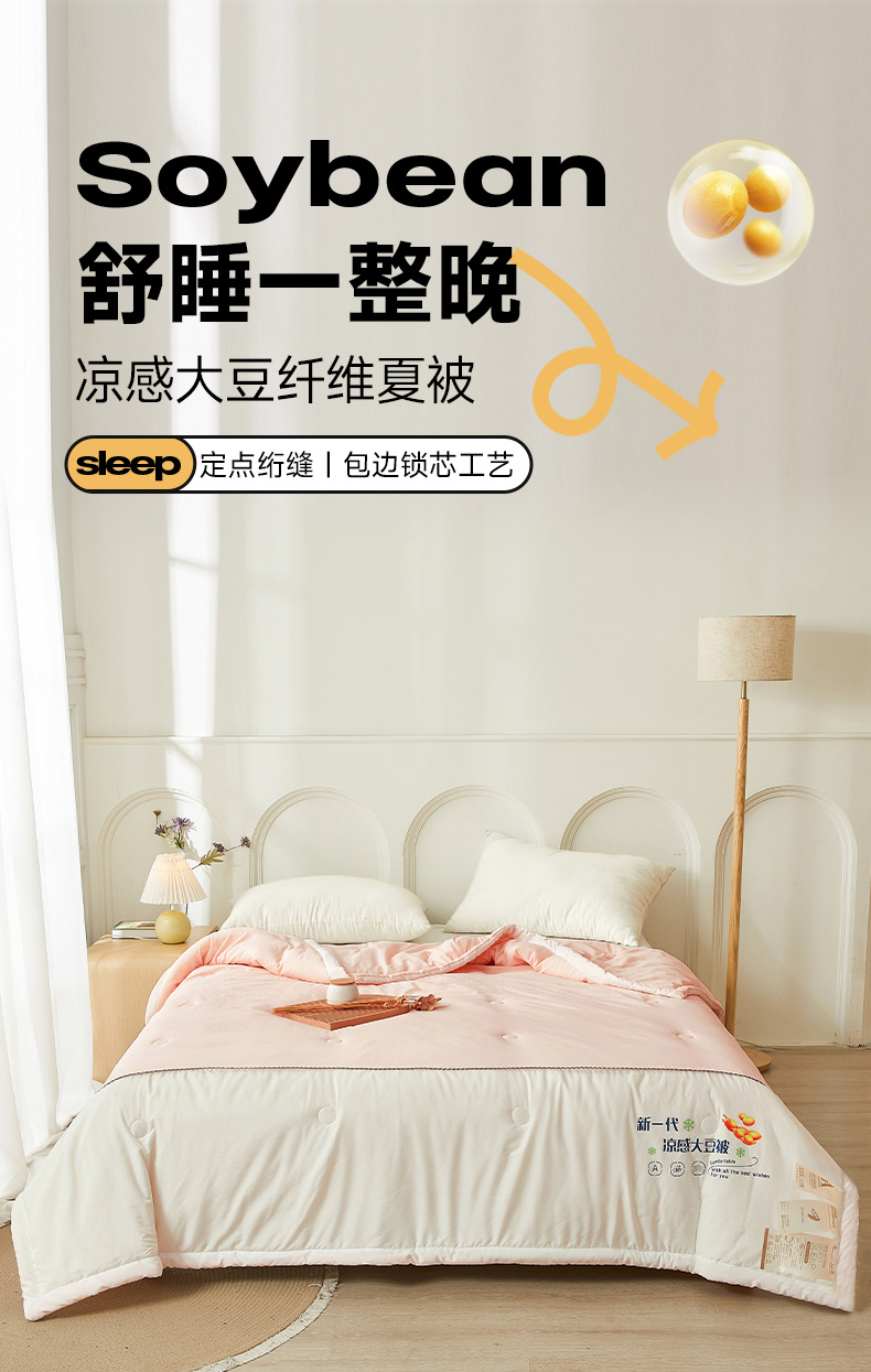 商品名称:钰博2024新款冰丝绸凉感夏被空调被夏凉被大豆被 粉+白