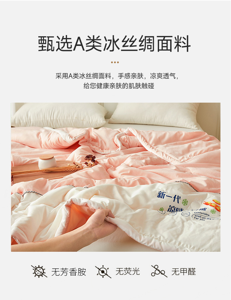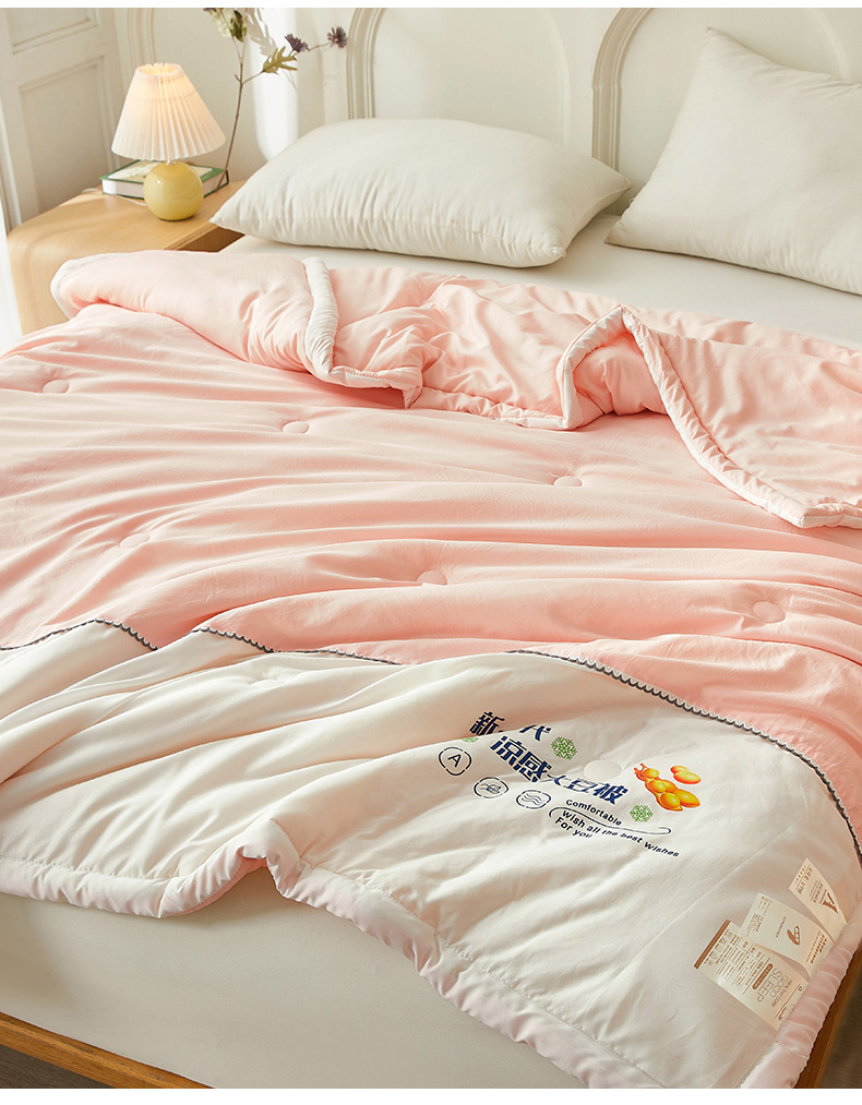 钰博2024新款冰丝绸凉感夏被空调被夏凉被大豆被 粉+白