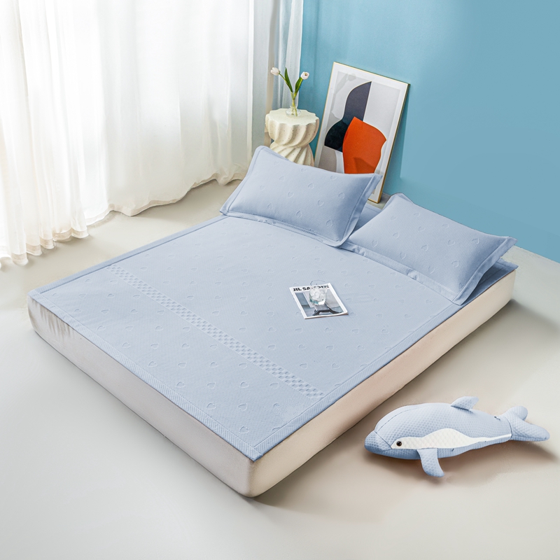 商品名称:青雅席业 2025新款A类母婴级凉感丝豆豆凉席 爱心蓝