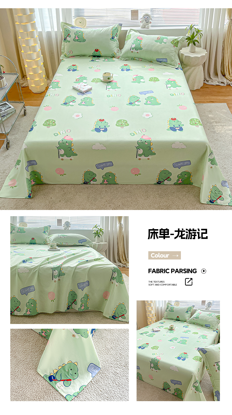 • 91家纺网 家纺一手货源 找家纺 涵宸家纺 2024新款全棉小清新印花单品套件--单床单 床单-龙游记