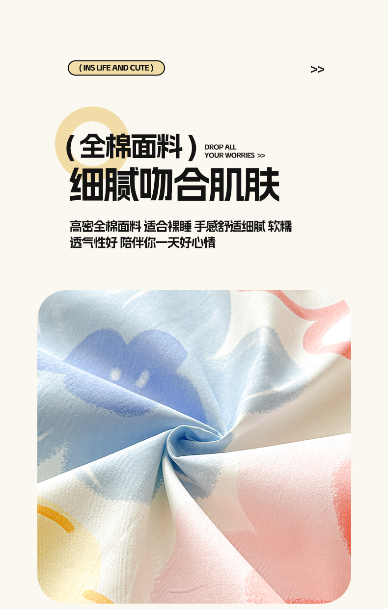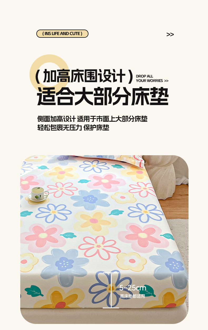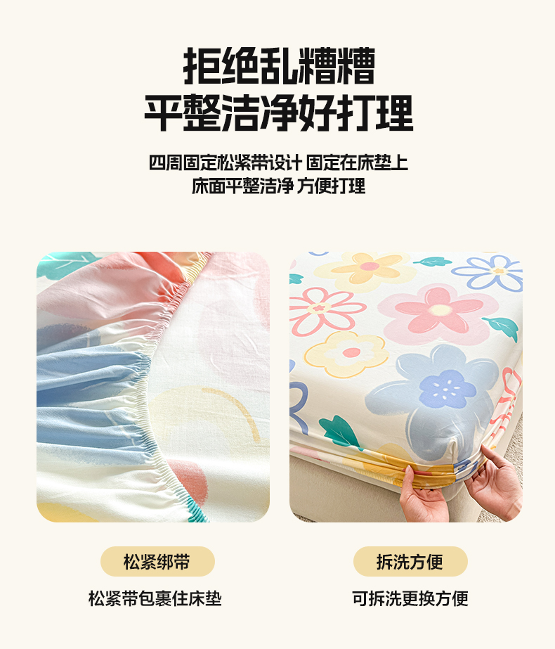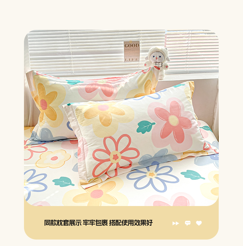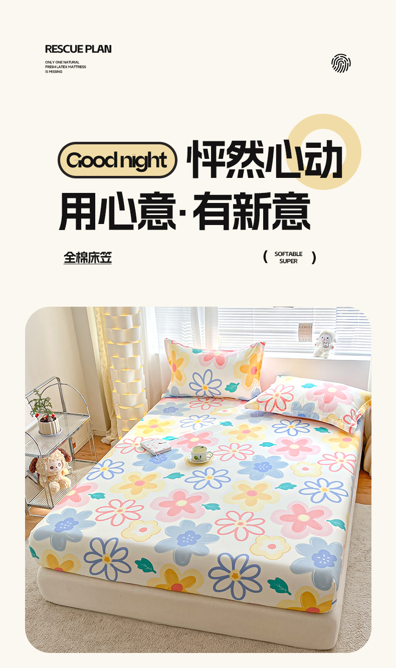 商品名称:涵宸家纺 2024新款全棉小清新印花单品套件--单床笠 床笠-爱恋