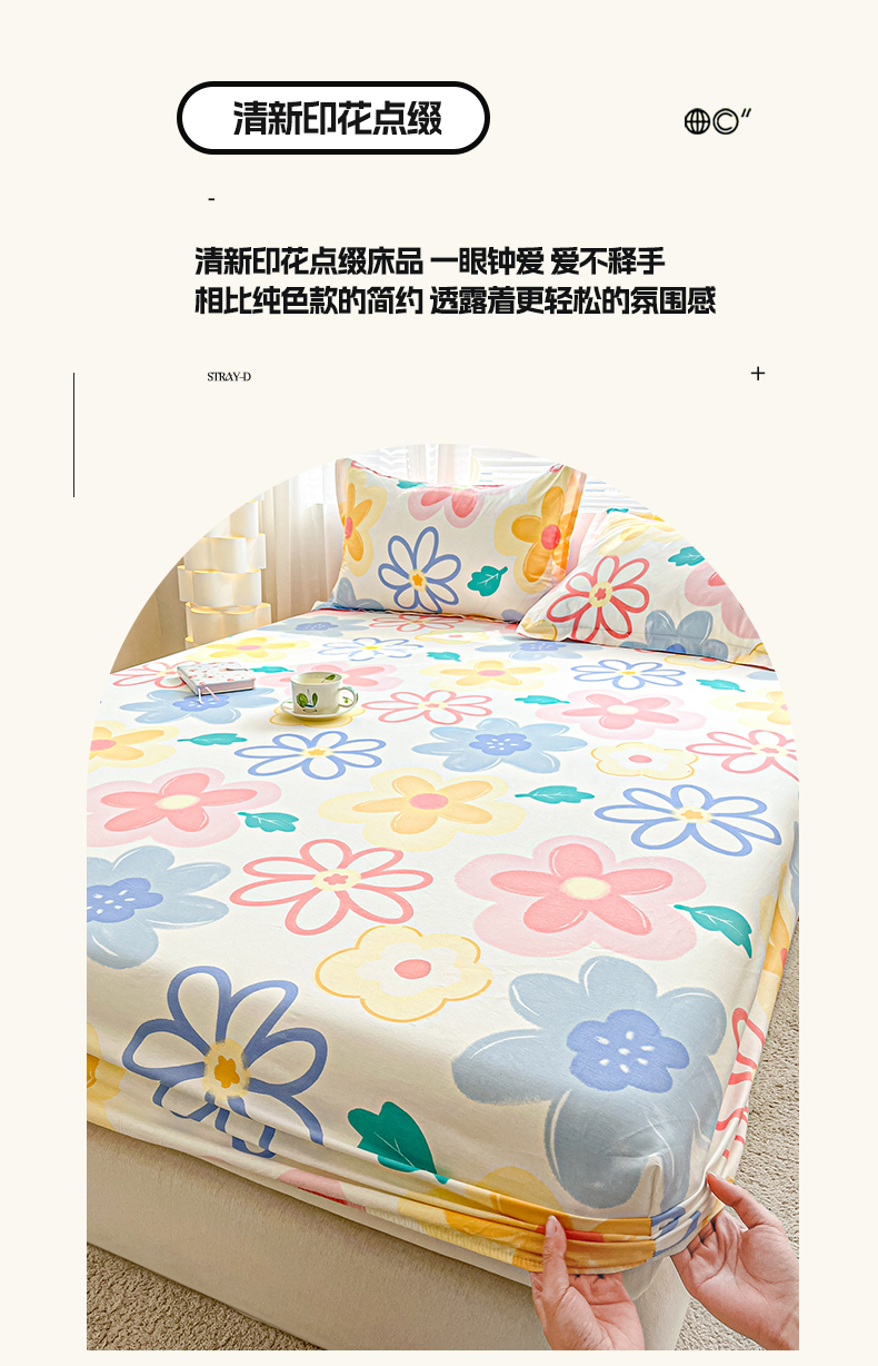 涵宸家纺 2024新款全棉小清新印花单品套件--单床笠 床笠-爱恋