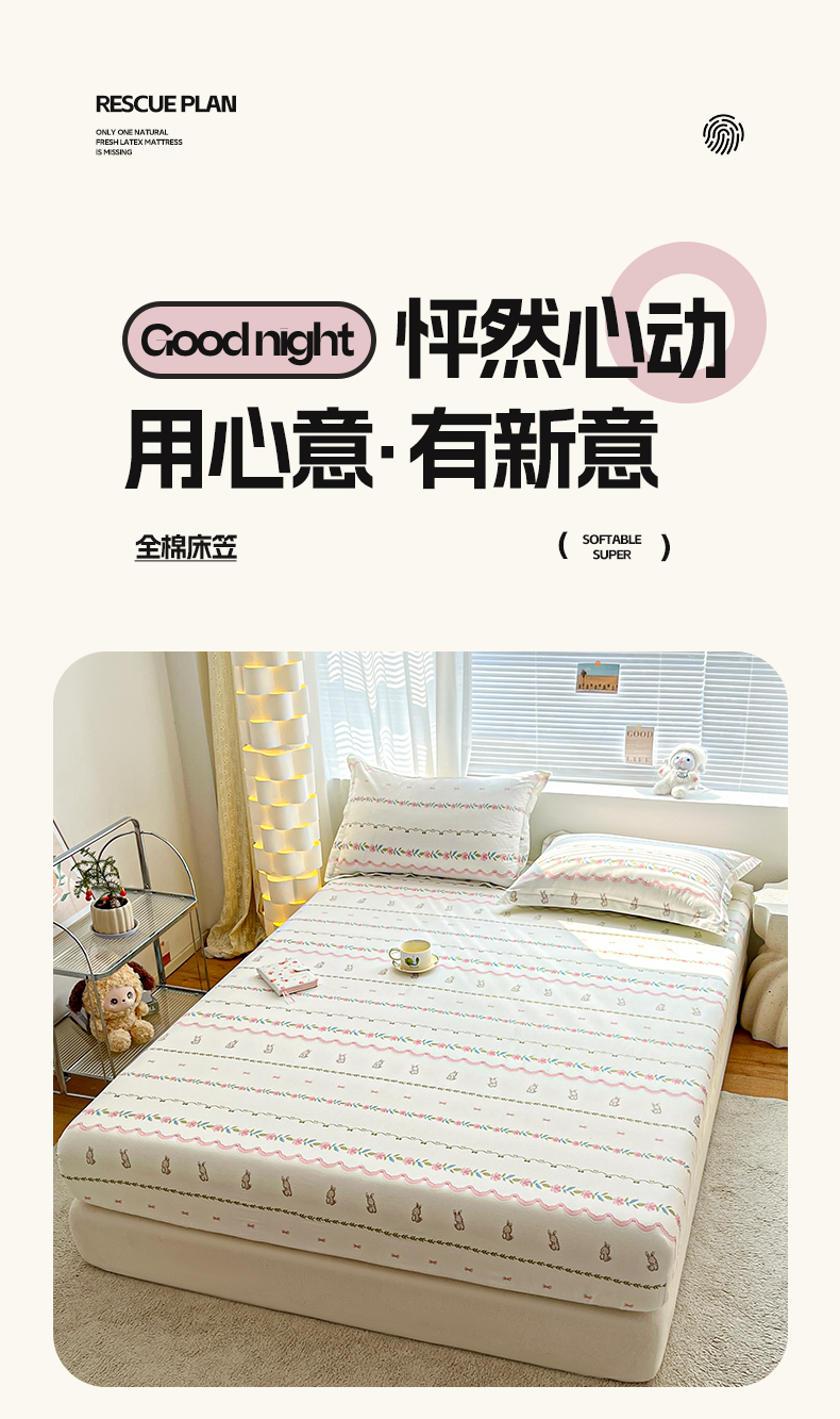 涵宸家纺 2024新款全棉小清新印花单品套件--单床笠 床笠-辛德瑞拉