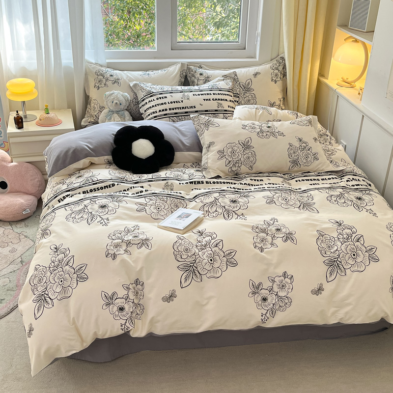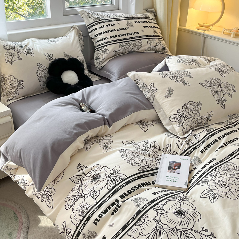 (总)涵宸家纺 2025新款全棉磨毛刺绣四件套系列-花蝴蝶,花蝴蝶-灰,花蝴蝶-奶白,花蝴蝶-浅粉