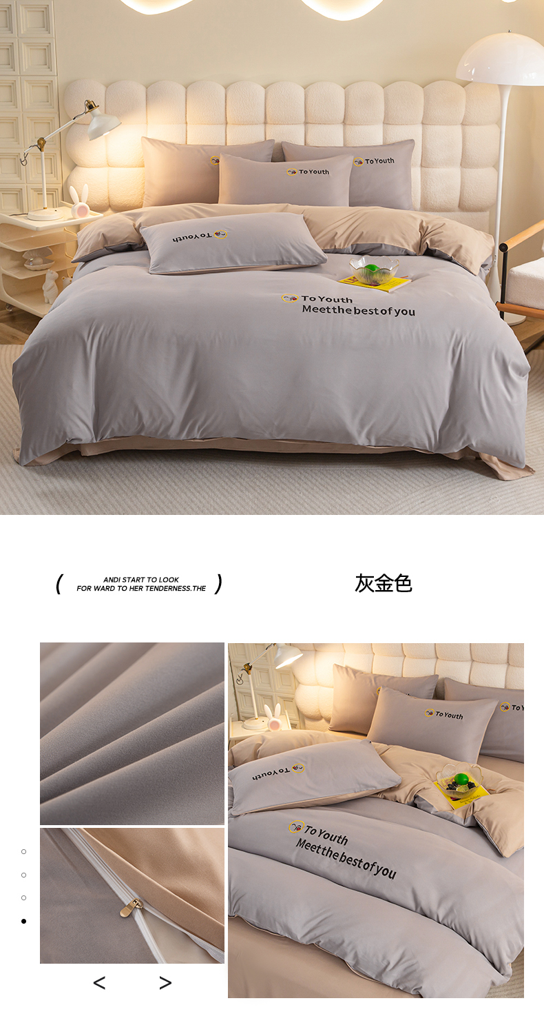 梦恬佳 2024新款水洗磨毛四件套 灰金色
