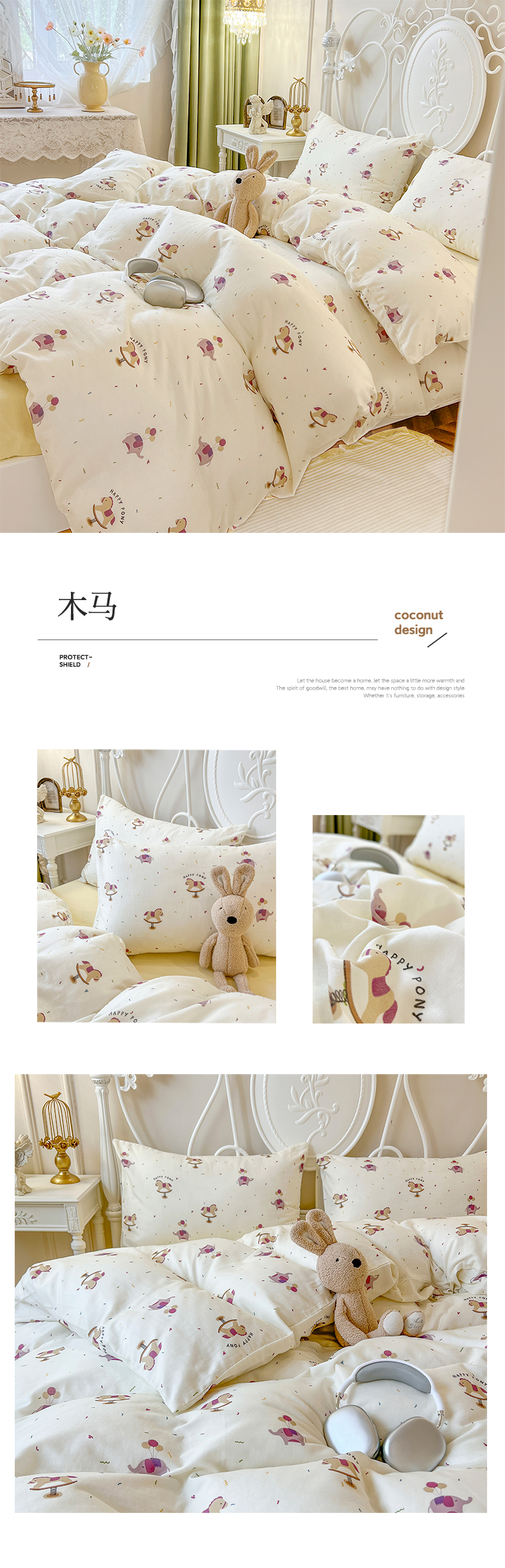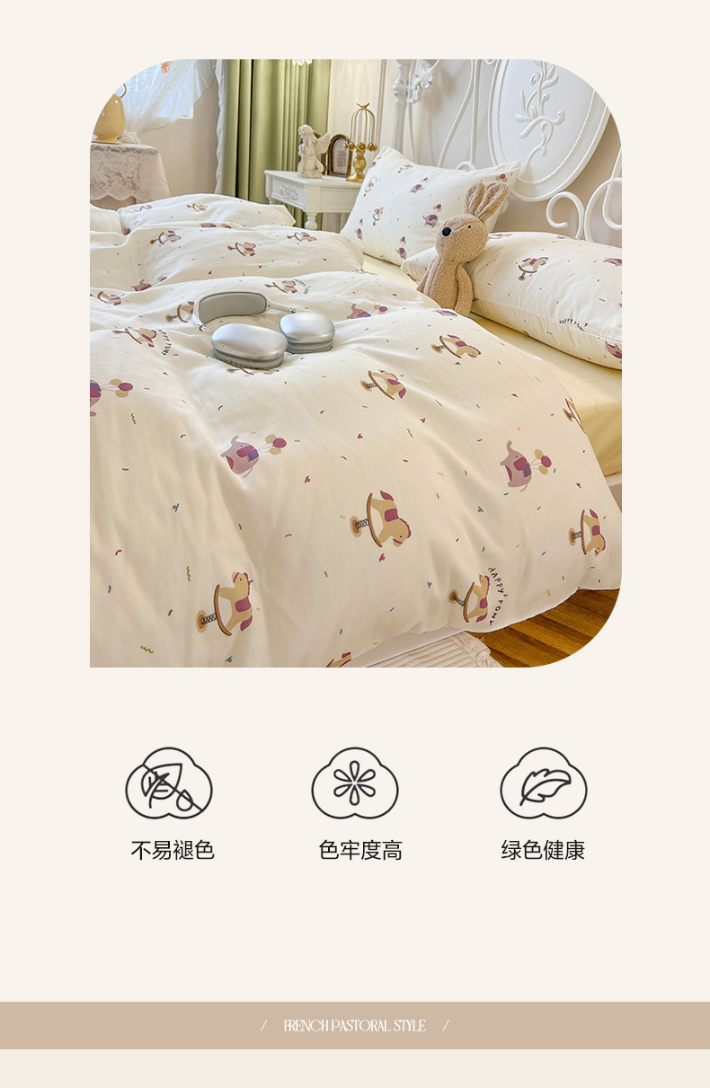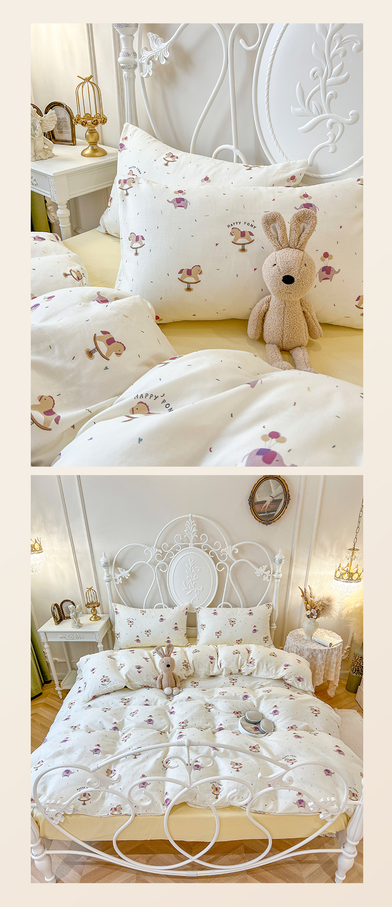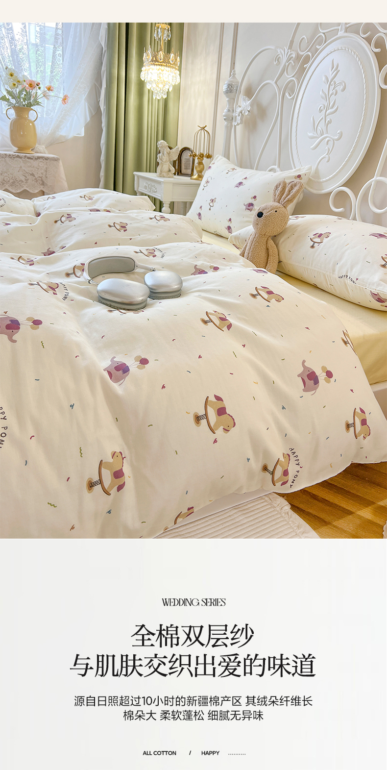 当前位置: 91家纺网 > 商品网购 > 床品套件 > 四件套 > 双层纱四件套 > 麒豆豆 2024款全棉双层纱四件套木马