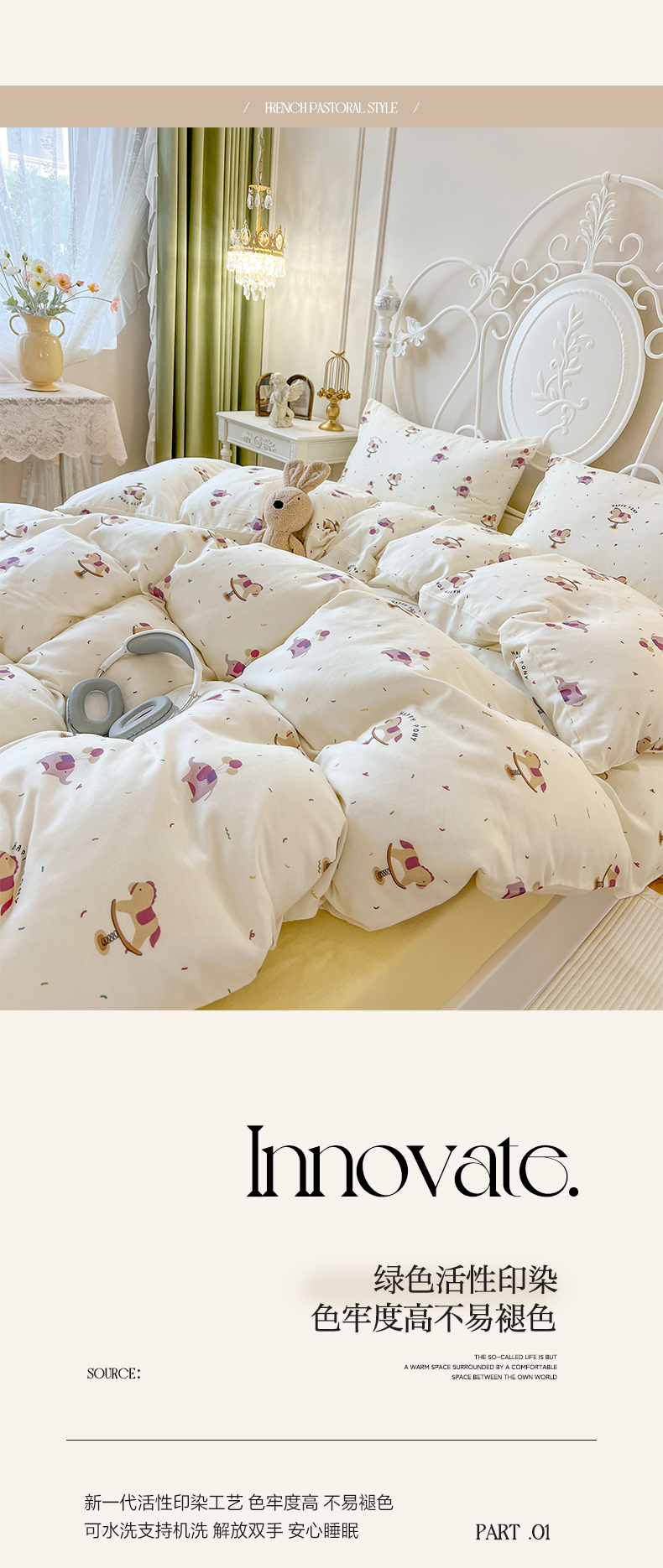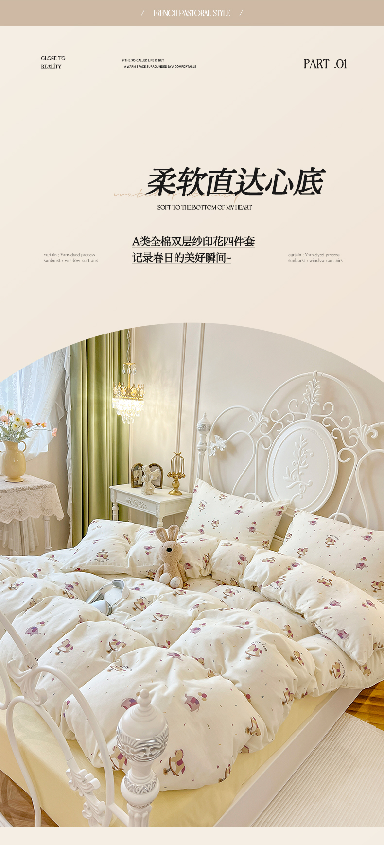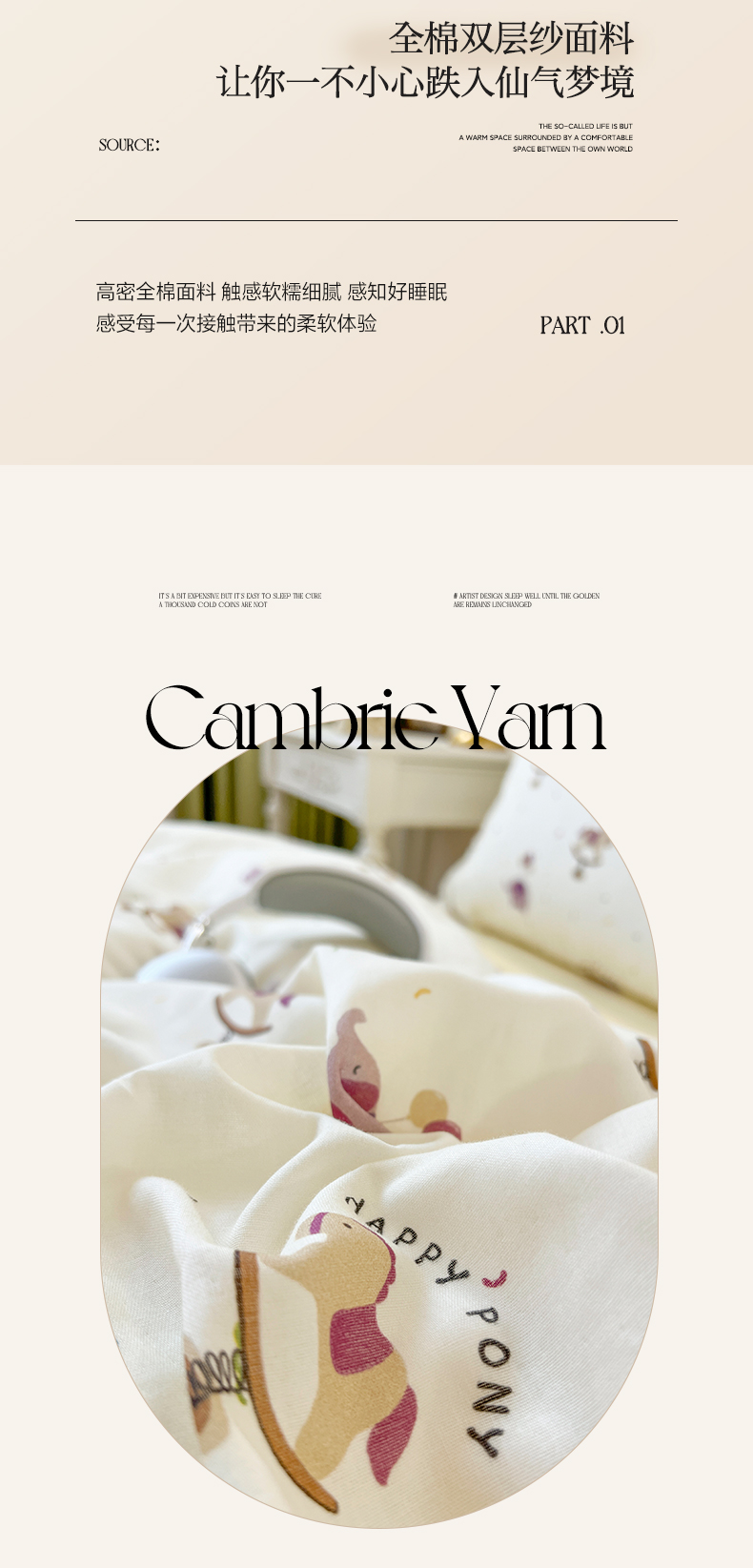 当前位置: 91家纺网 > 商品网购 > 床品套件 > 四件套 > 双层纱四件套 > 麒豆豆 2024款全棉双层纱四件套木马