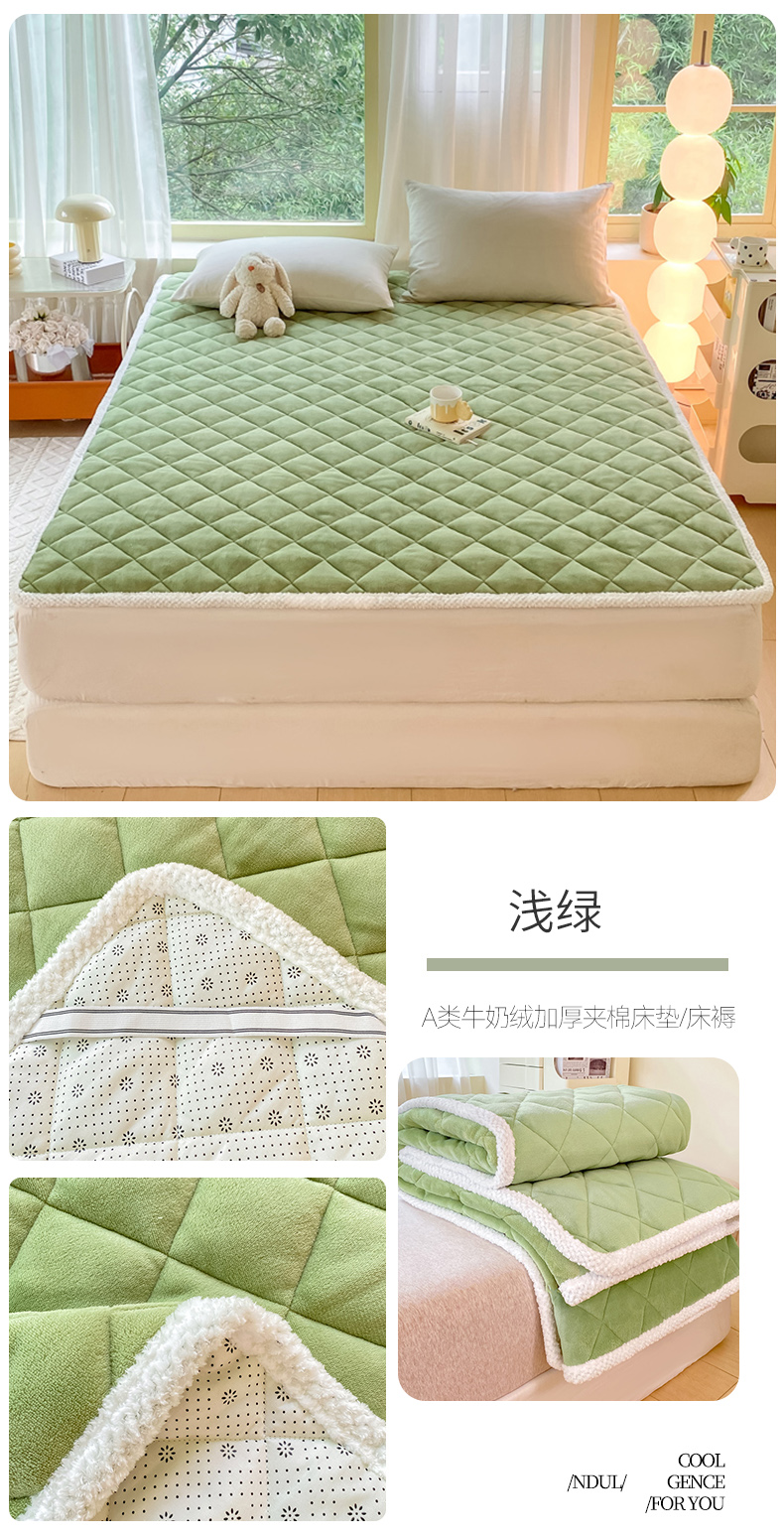 商品名称:正邦家纺 2024新款牛奶绒床垫小清新加厚床褥保暖宽包边可机洗床护垫床褥 浅绿
